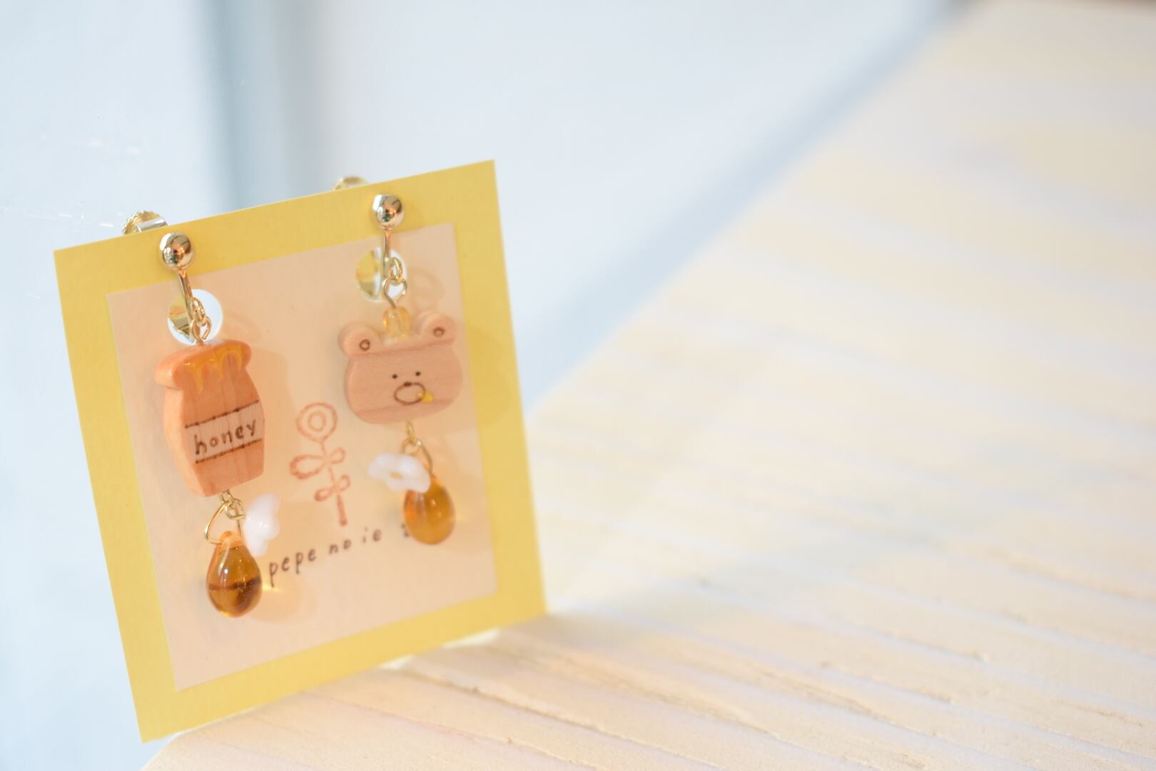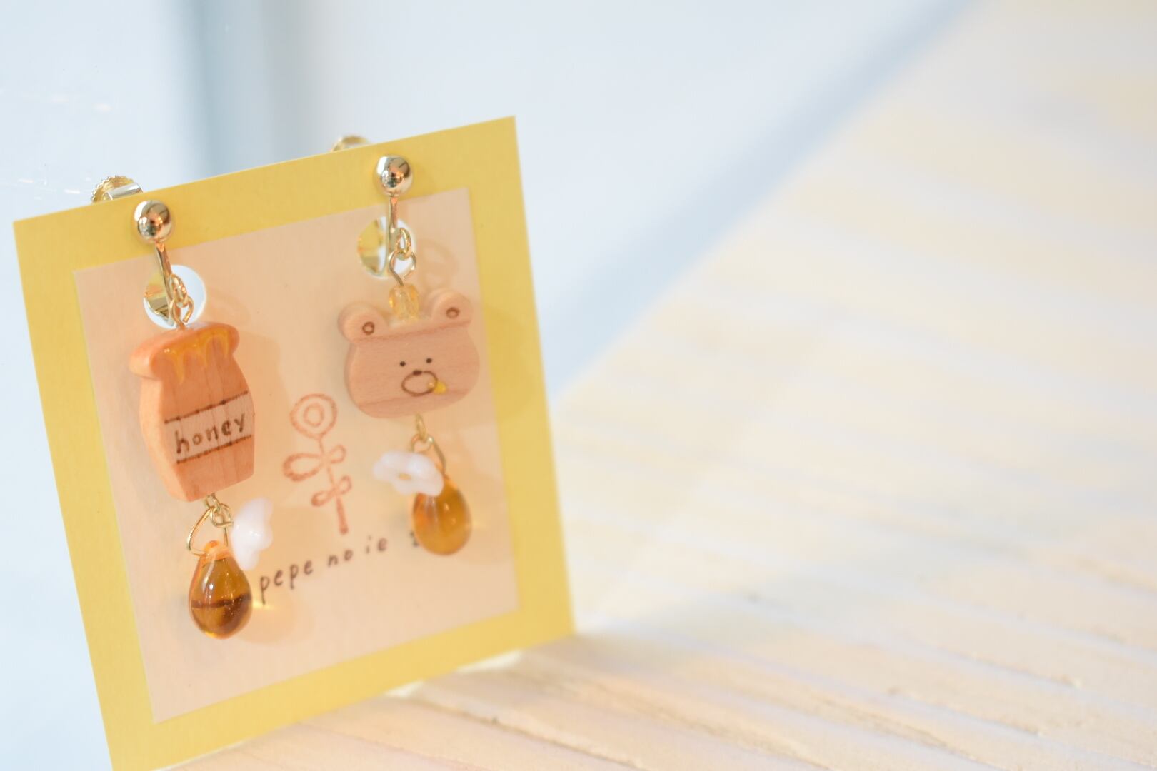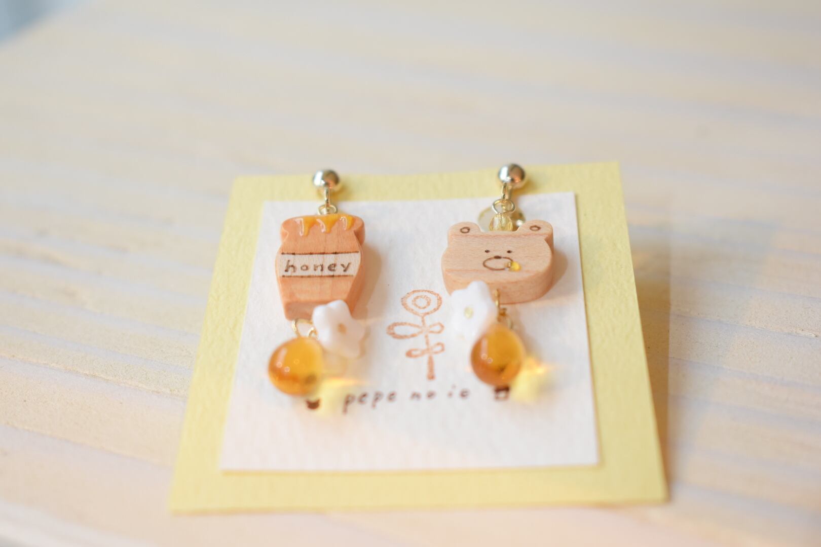【ピアス変更可能】ぺぺの家/クマと蜂蜜イヤリング