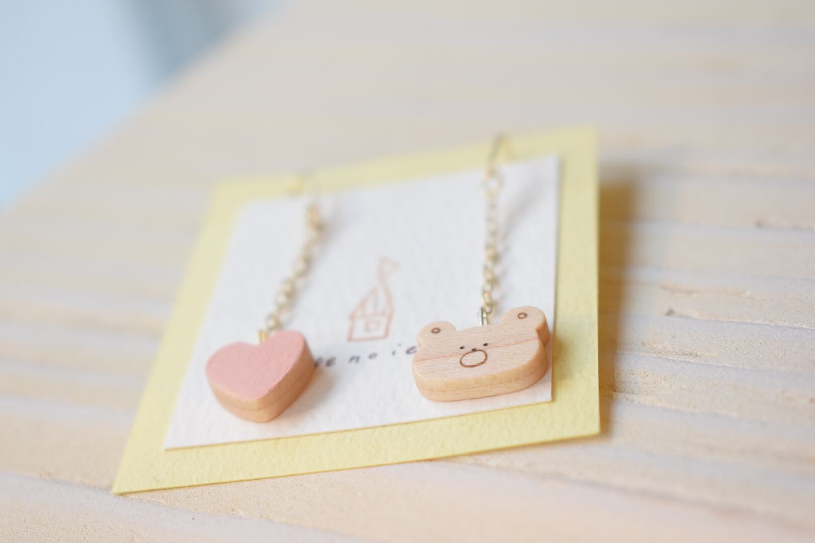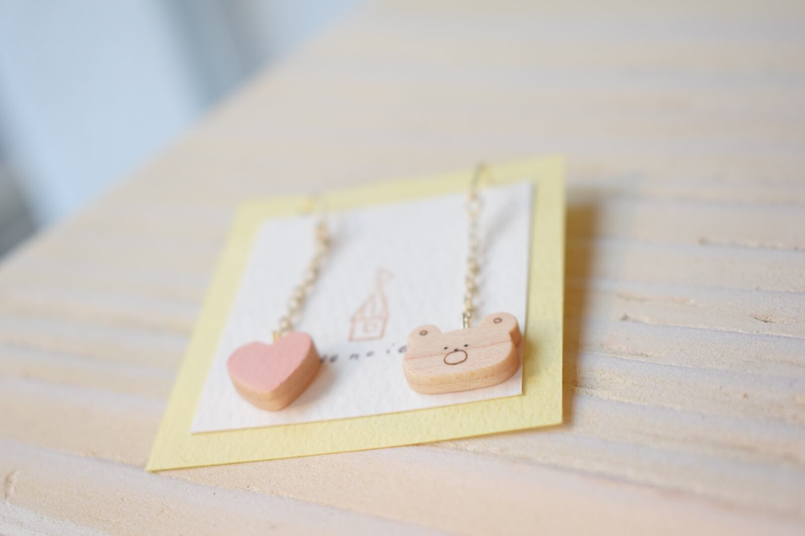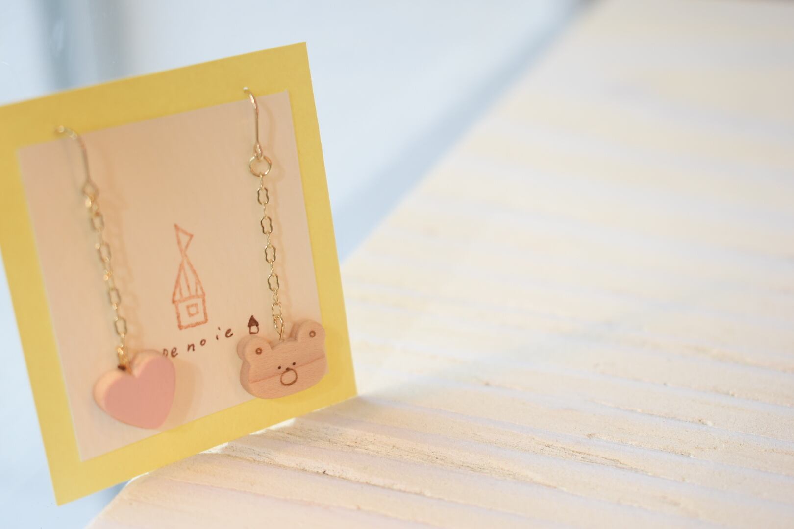 【イヤリング変更可能】ぺぺの家/ハートとクマさんピアス