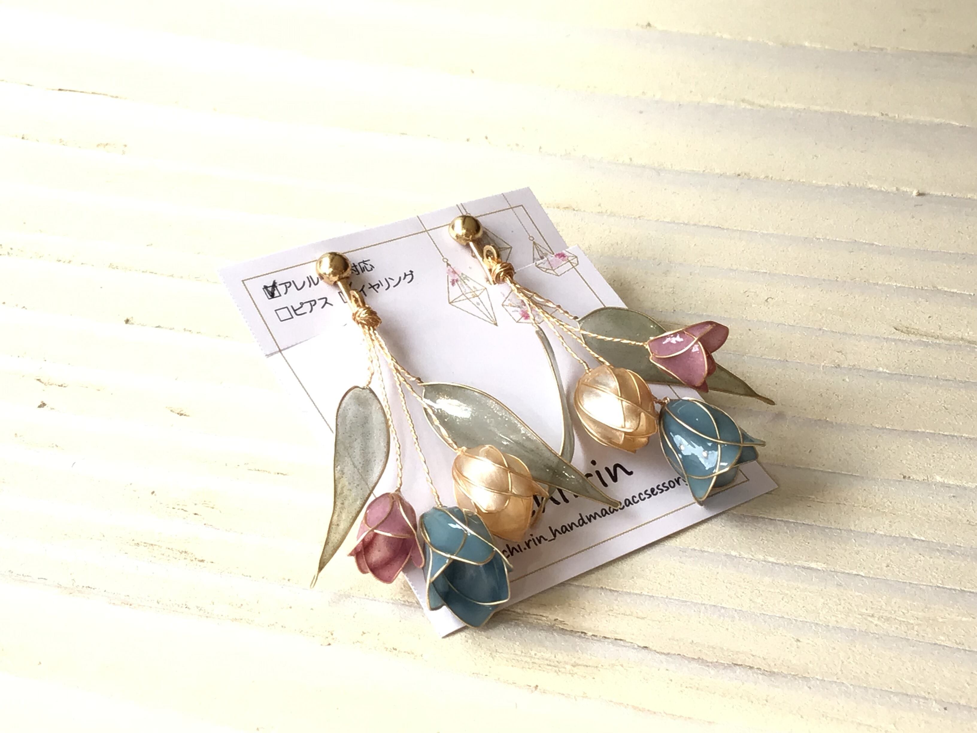 【ピアス変更可能】ichi.rin/チューリップイヤリング
