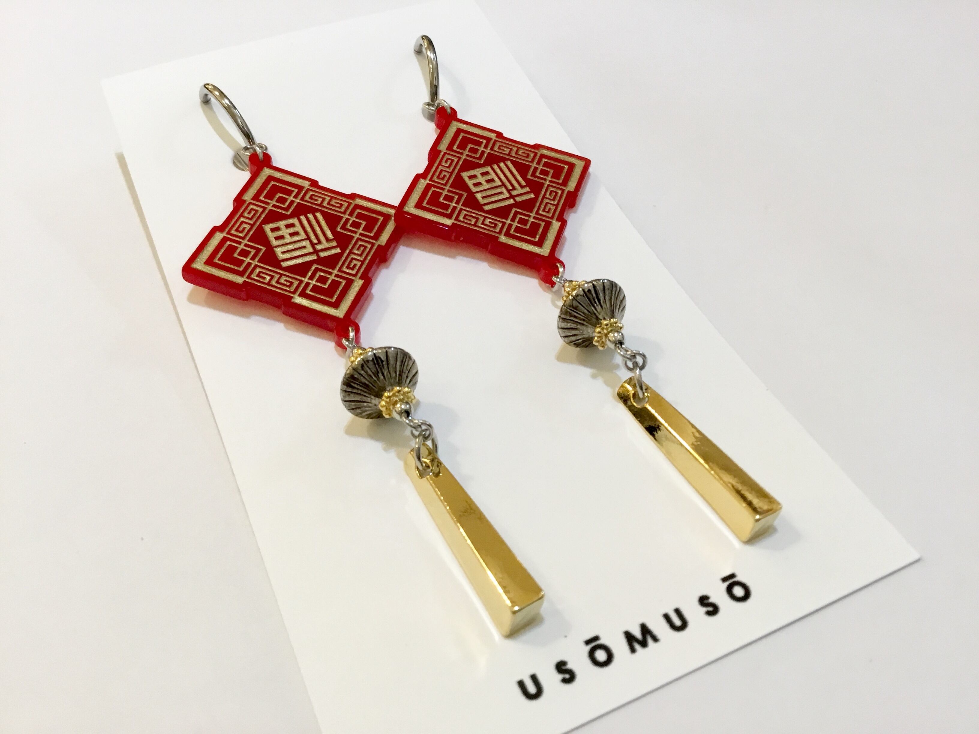 usomuso 様 存在感抜群の中華風アクセサリーです。 お顔の印象がぱっと強くなりスタイリッシュに仕上がります。 ニッケルフリーメッキのイヤリング使用 ピアス変更可能 ※ピアス変更希望の方は、必ず備考欄にご連絡ください。 ※ピアスに交換された場合は金属アレルギー対応の金具ではありません。ご了承ください。 寺町 132