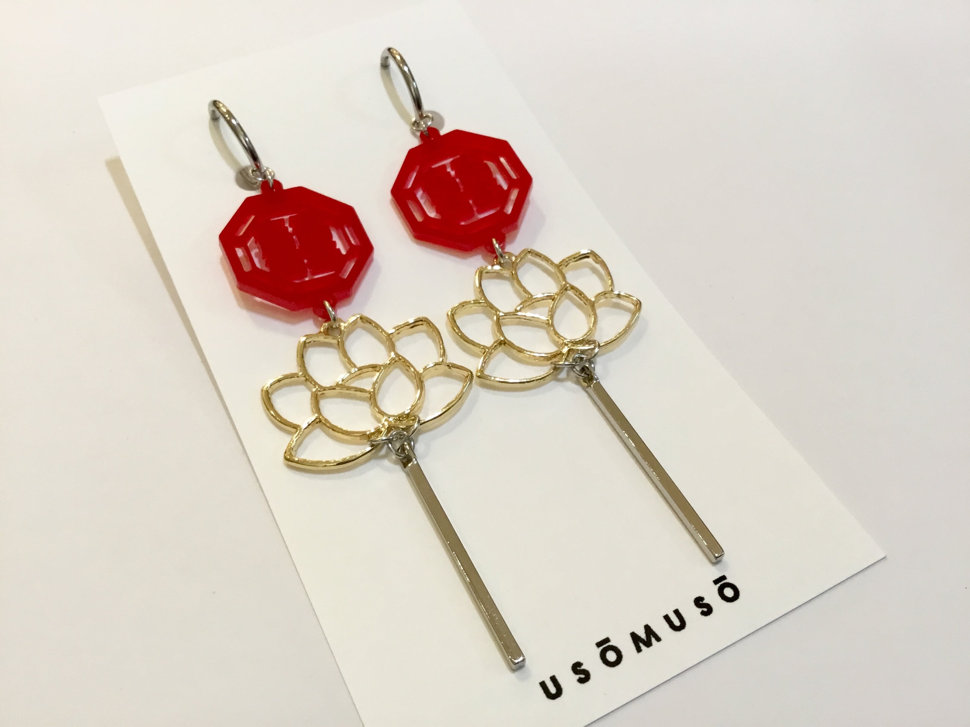 usomuso 様 存在感抜群の中華風アクセサリーです。 お顔の印象がぱっと強くなりスタイリッシュに仕上がります。 ニッケルフリーメッキのイヤリング使用 ピアス変更可能 ※ピアス変更希望の方は、必ず備考欄にご連絡ください。 ※ピアスに交換された場合は金属アレルギー対応の金具ではありません。ご了承ください。 寺町 126