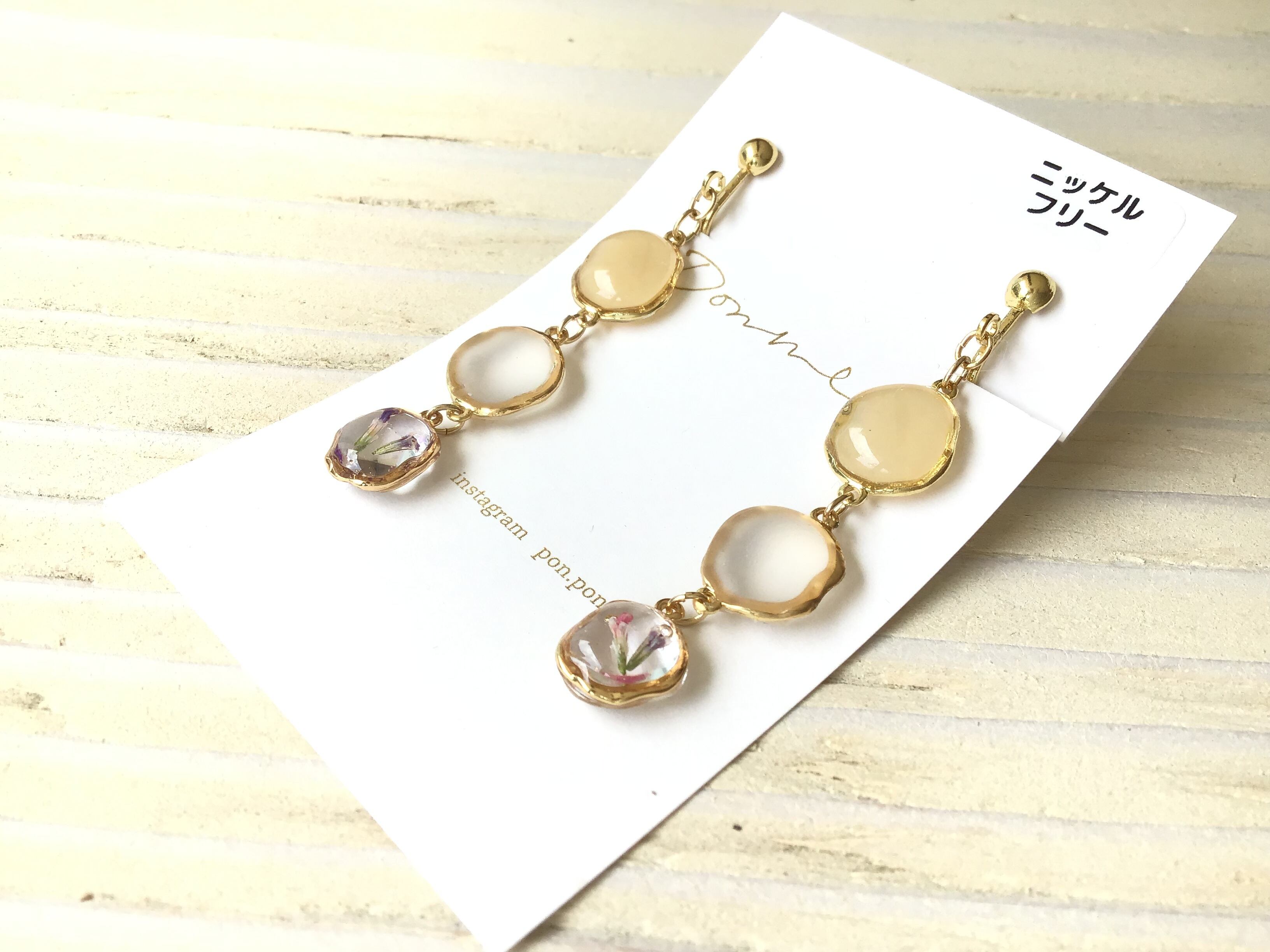 【ピアス変更可能】ponne/3連つぶつぶイヤリング