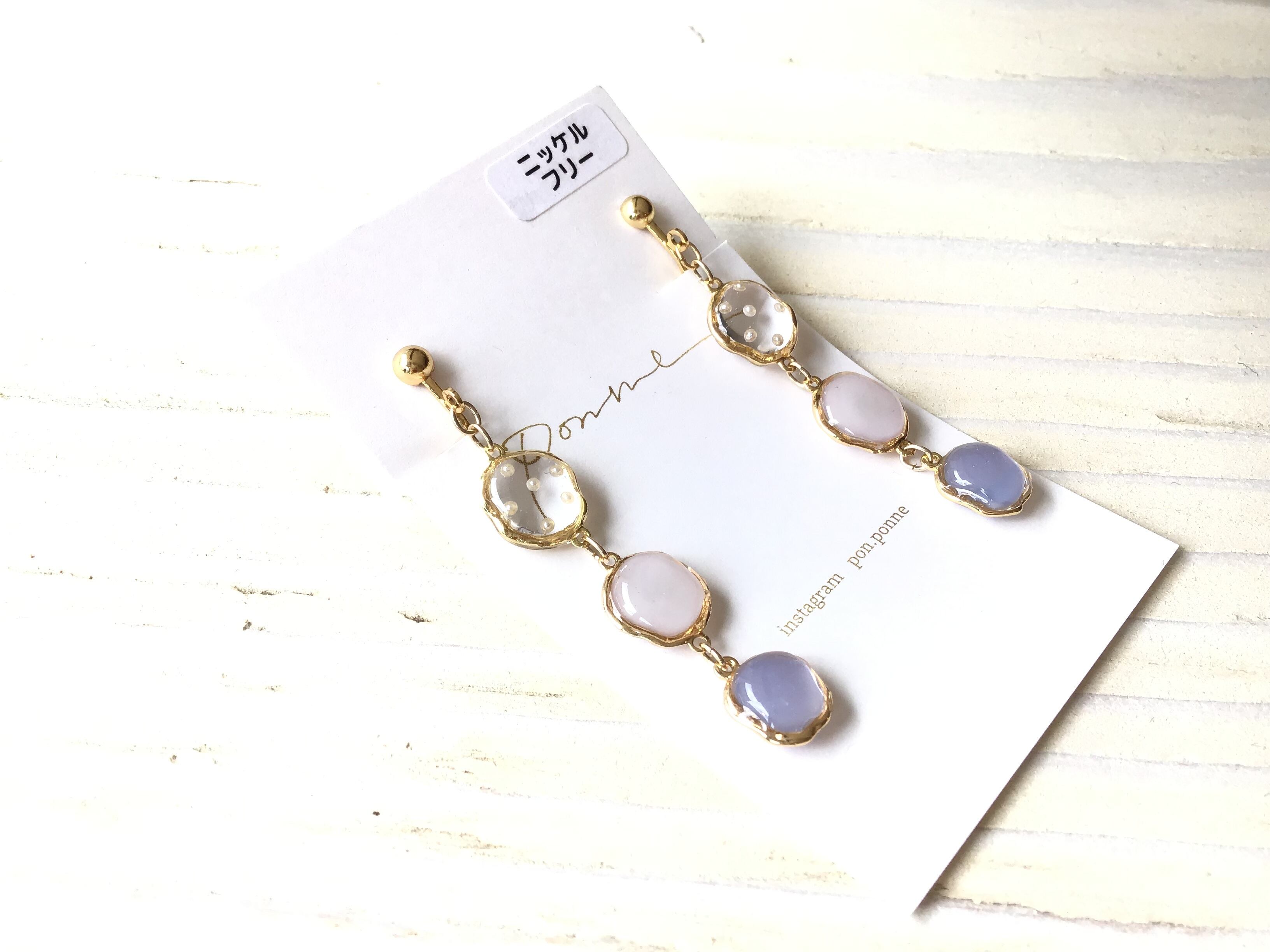 【ピアス変更可能】ponne/3連つぶつぶイヤリング