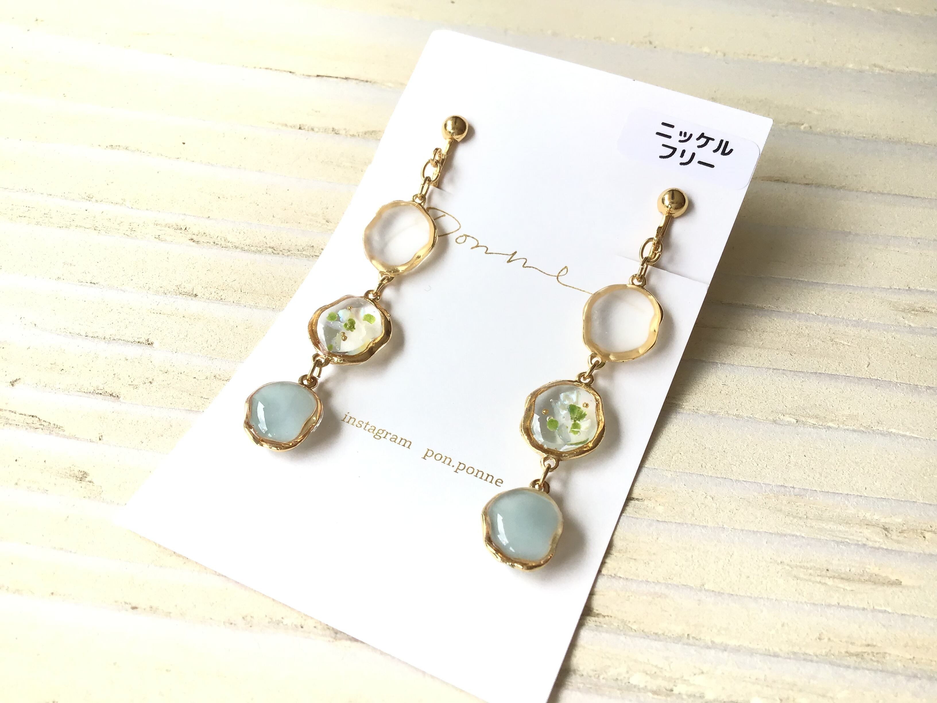 【ピアス変更可能】ponne/3連つぶつぶイヤリング