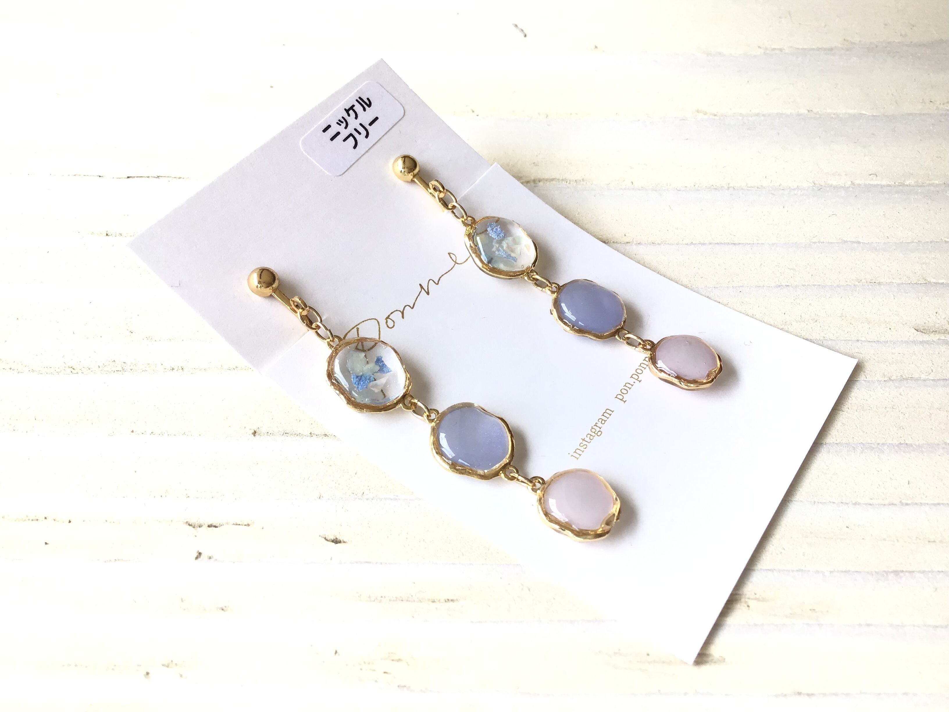 【ピアス変更可能】ponne/3連つぶつぶイヤリング