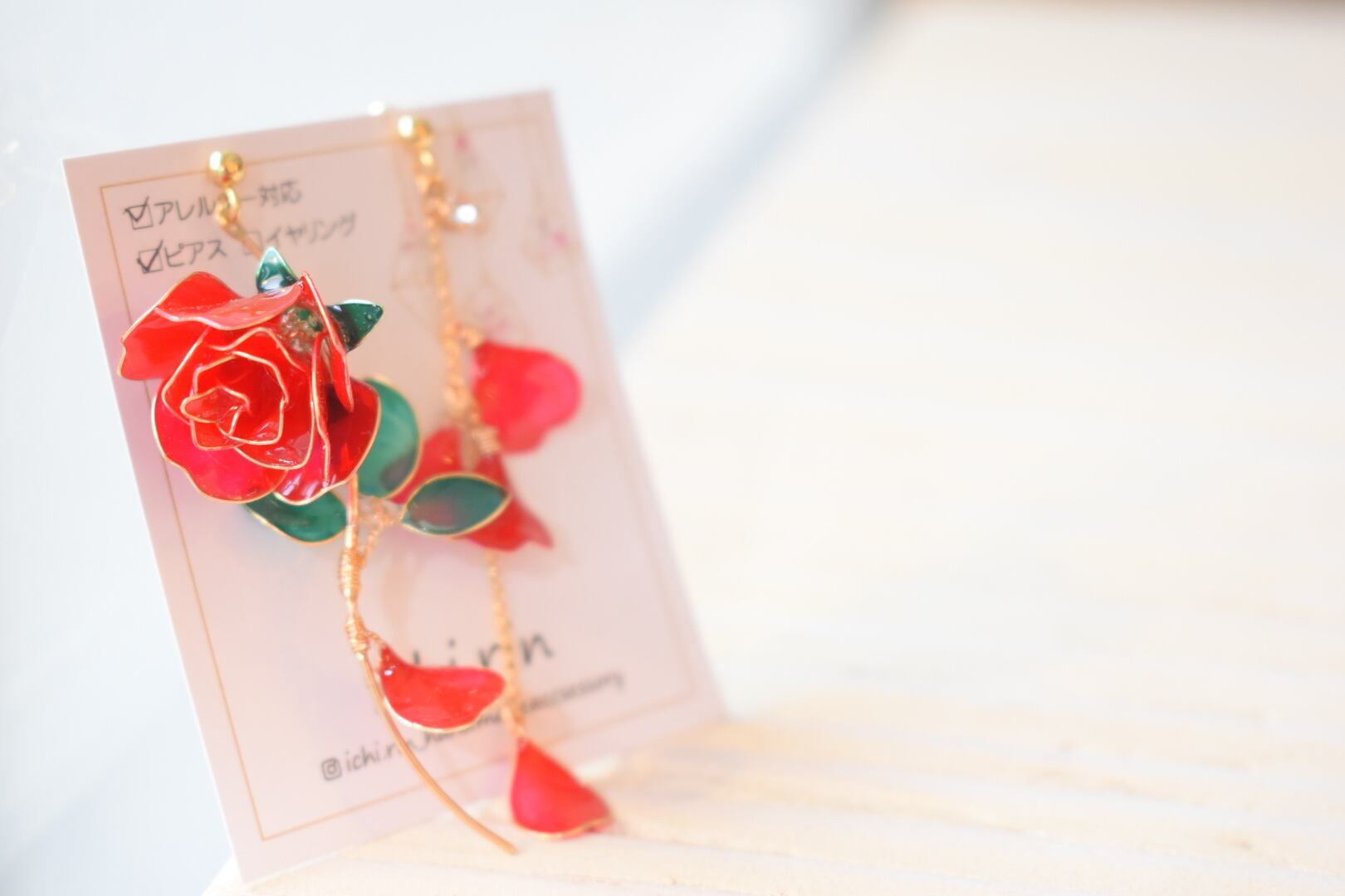 【イヤリング変更可能】ichi.rin/薔薇のピアス/アレルギー対応