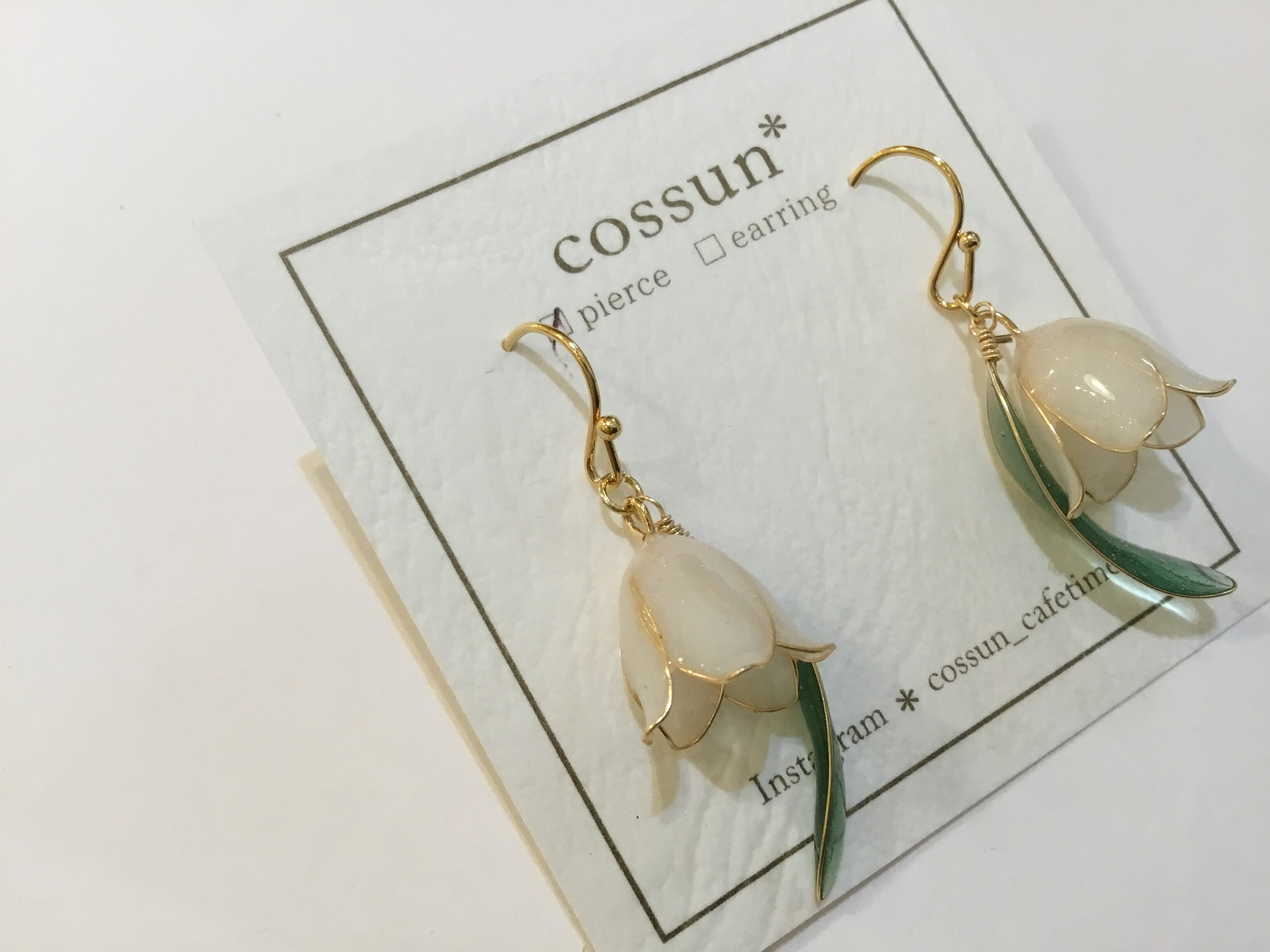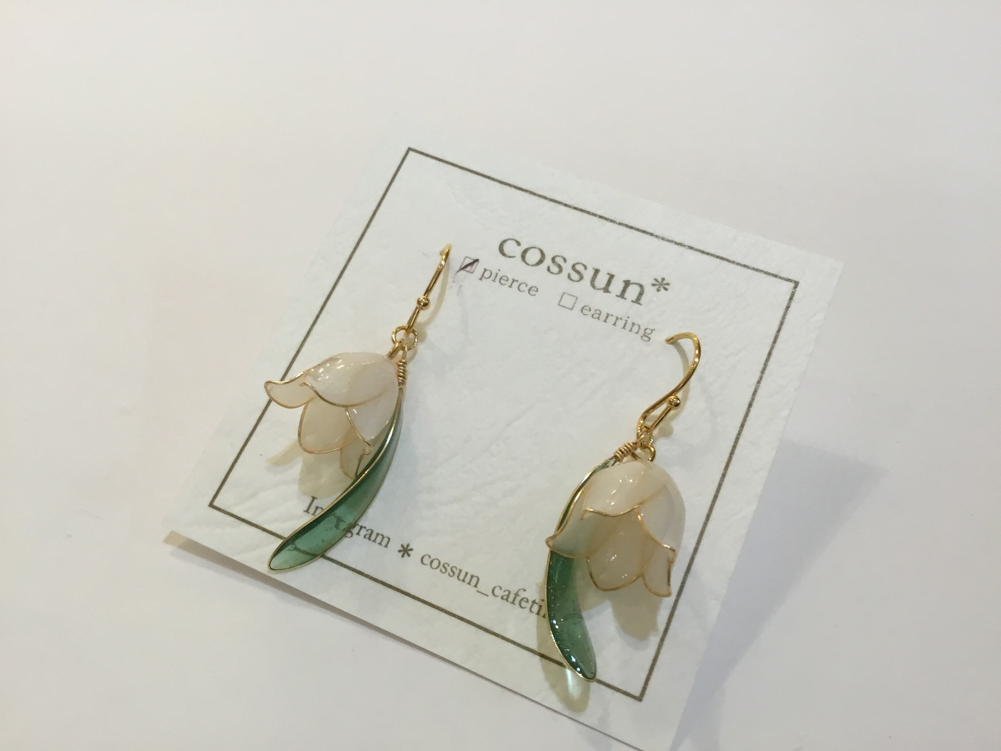 【イヤリング変更可能】cossun 小花×リーフピアス