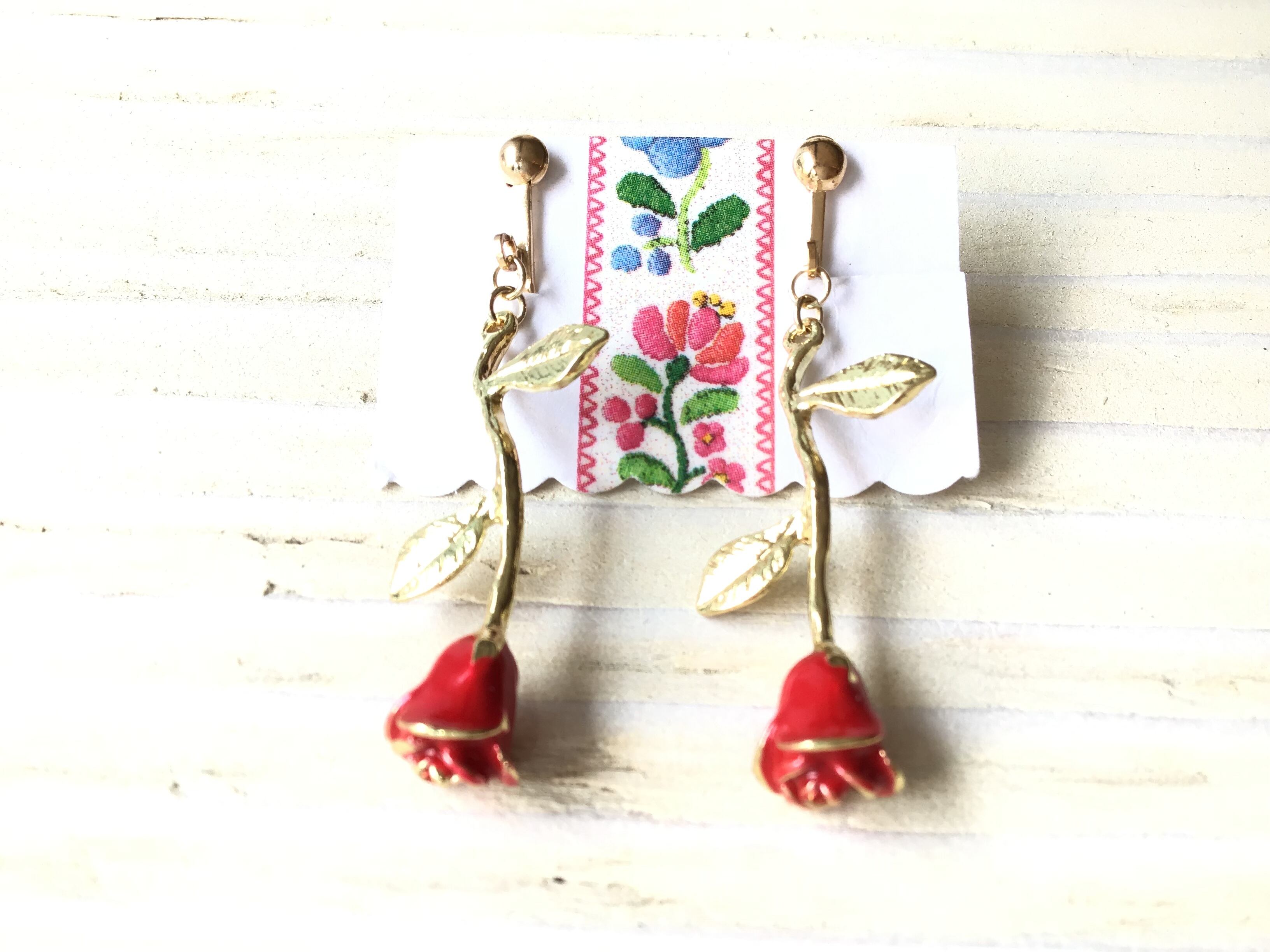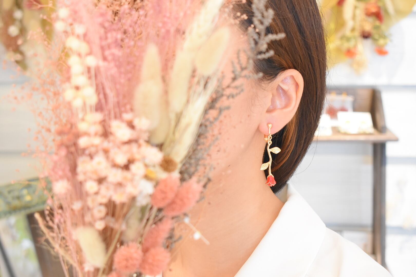【ピアス変更可能】アトリエSATO/赤いバラのイヤリング