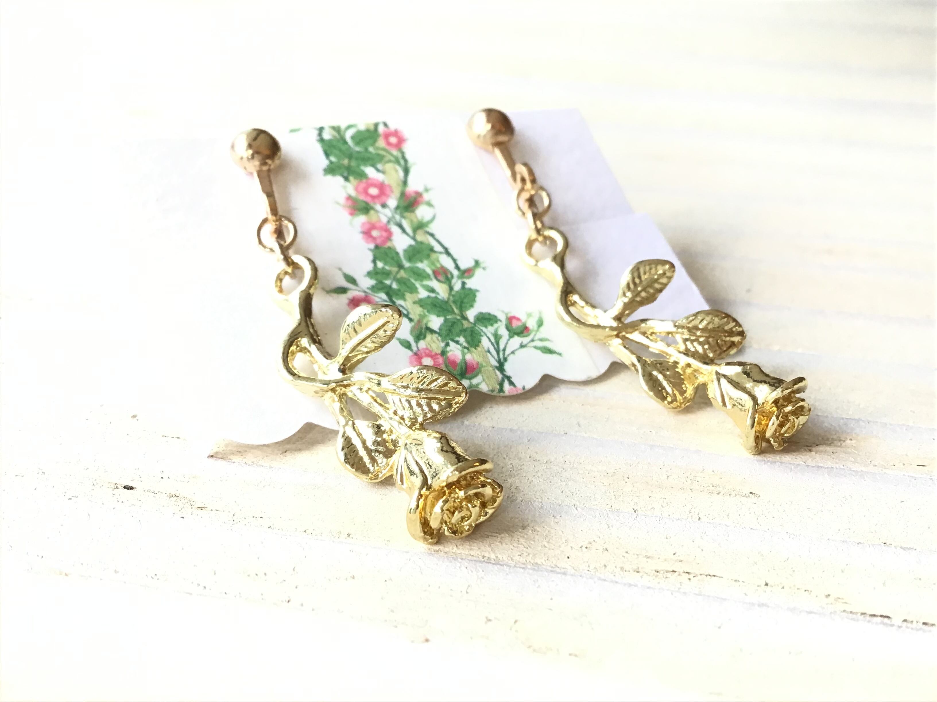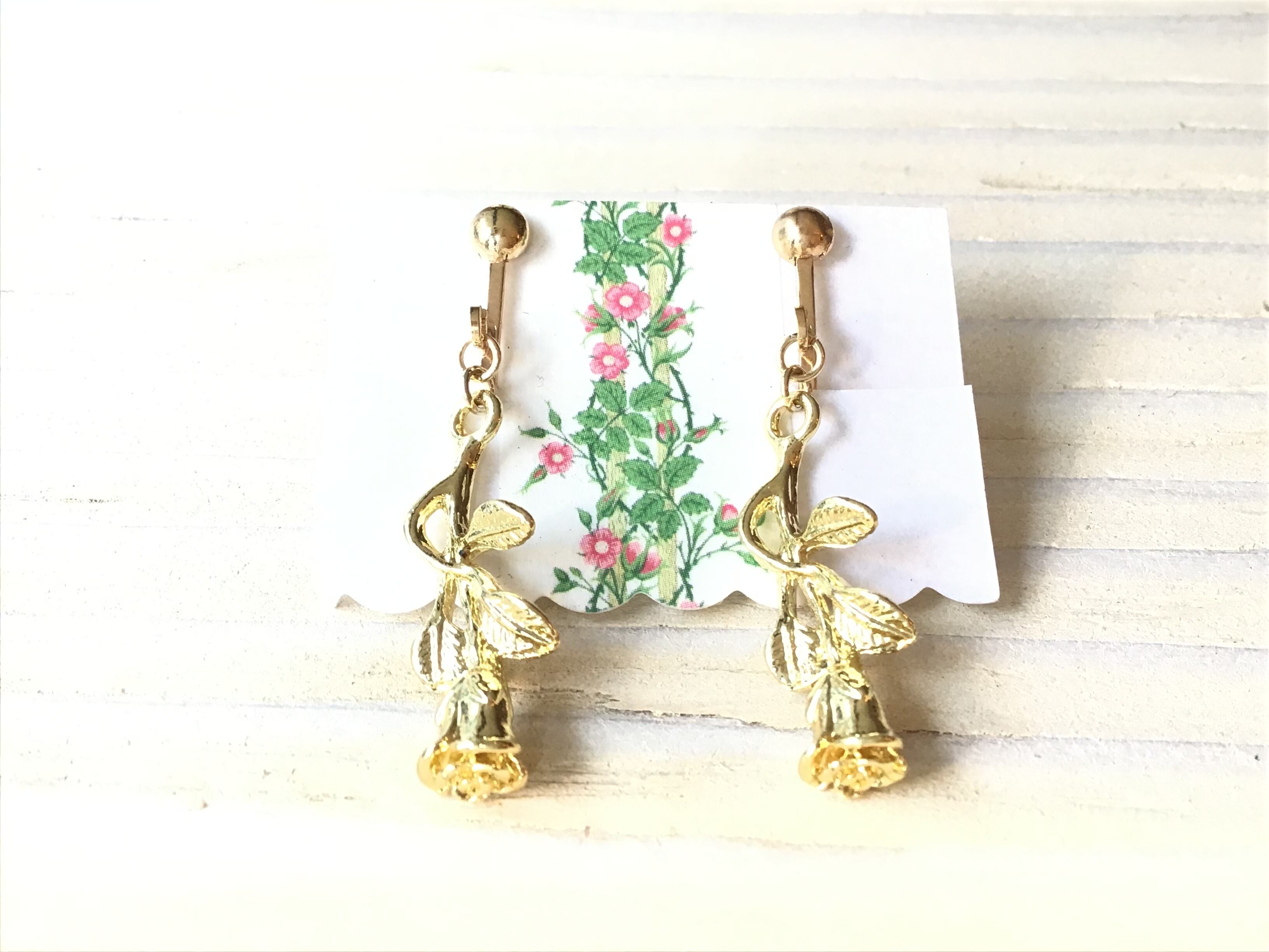 【ピアス変更可能】アトリエSATO/金色のバラのイヤリング