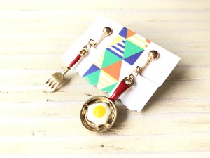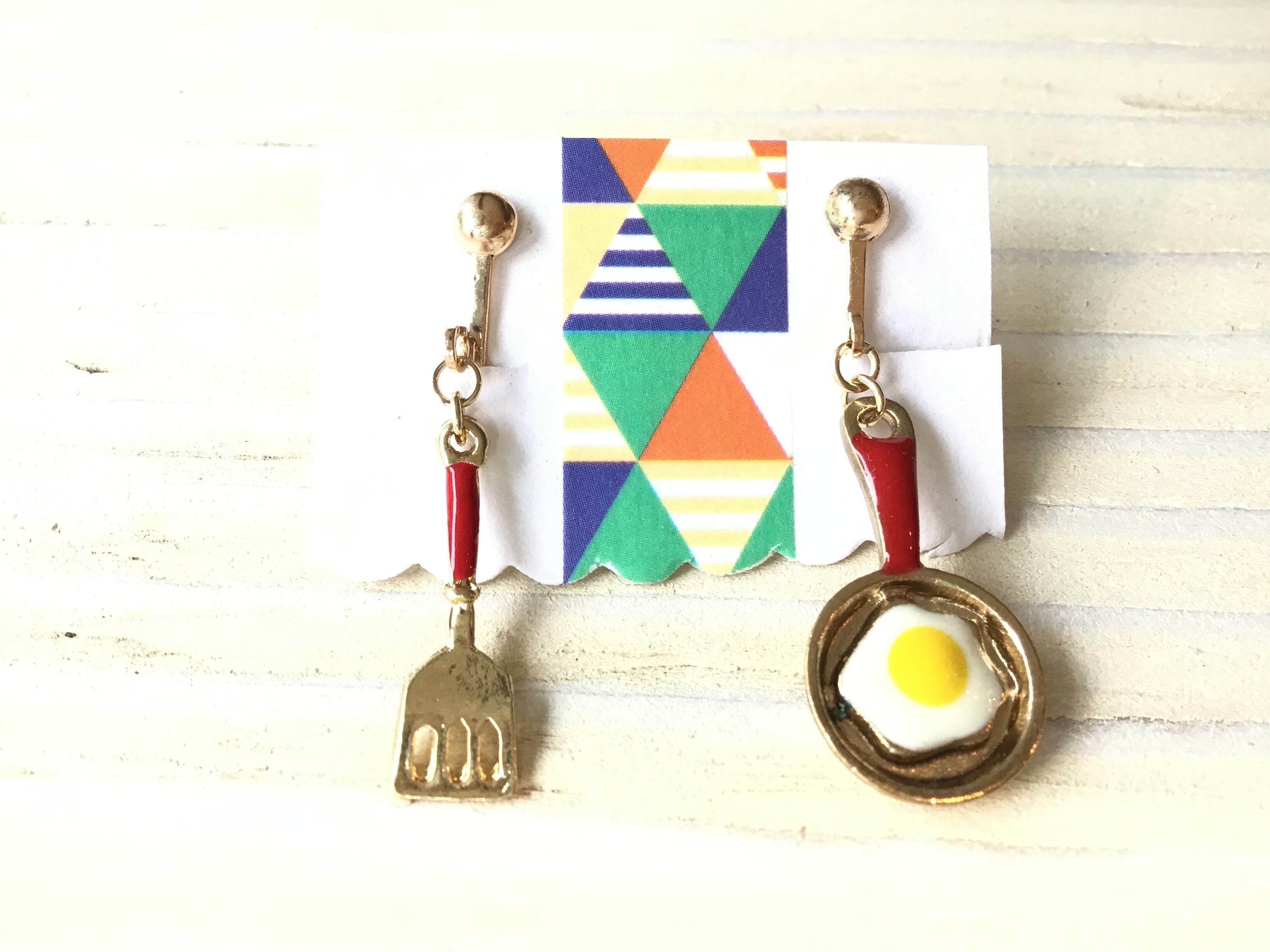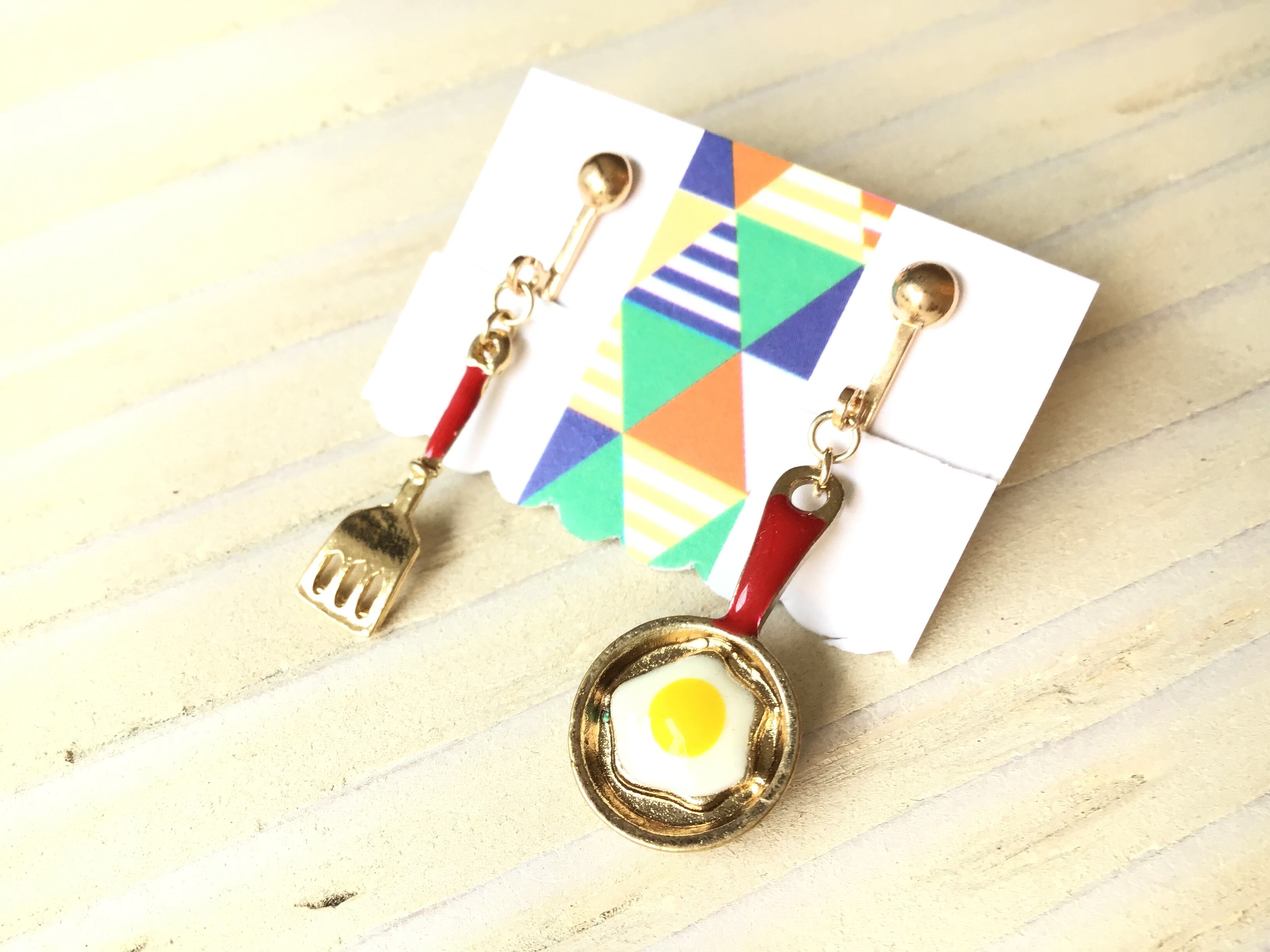 目玉焼きがのったフライパンとフライ返しのイヤリングです♪
