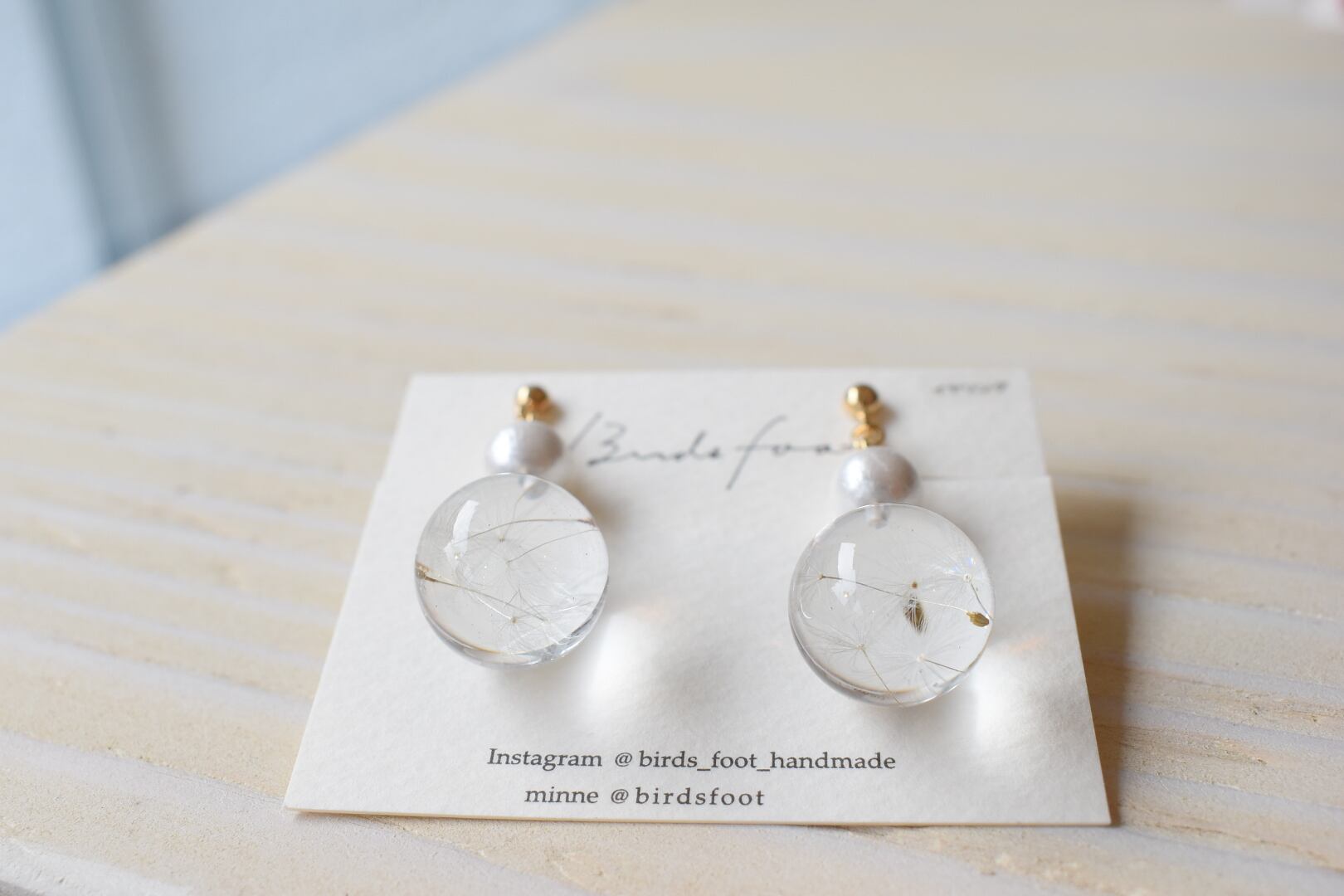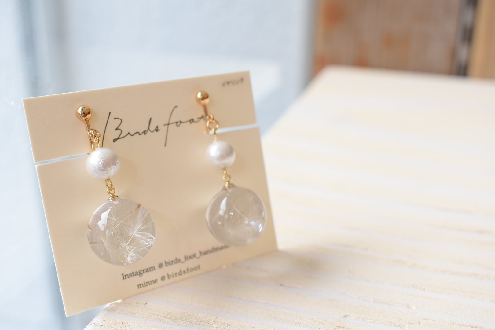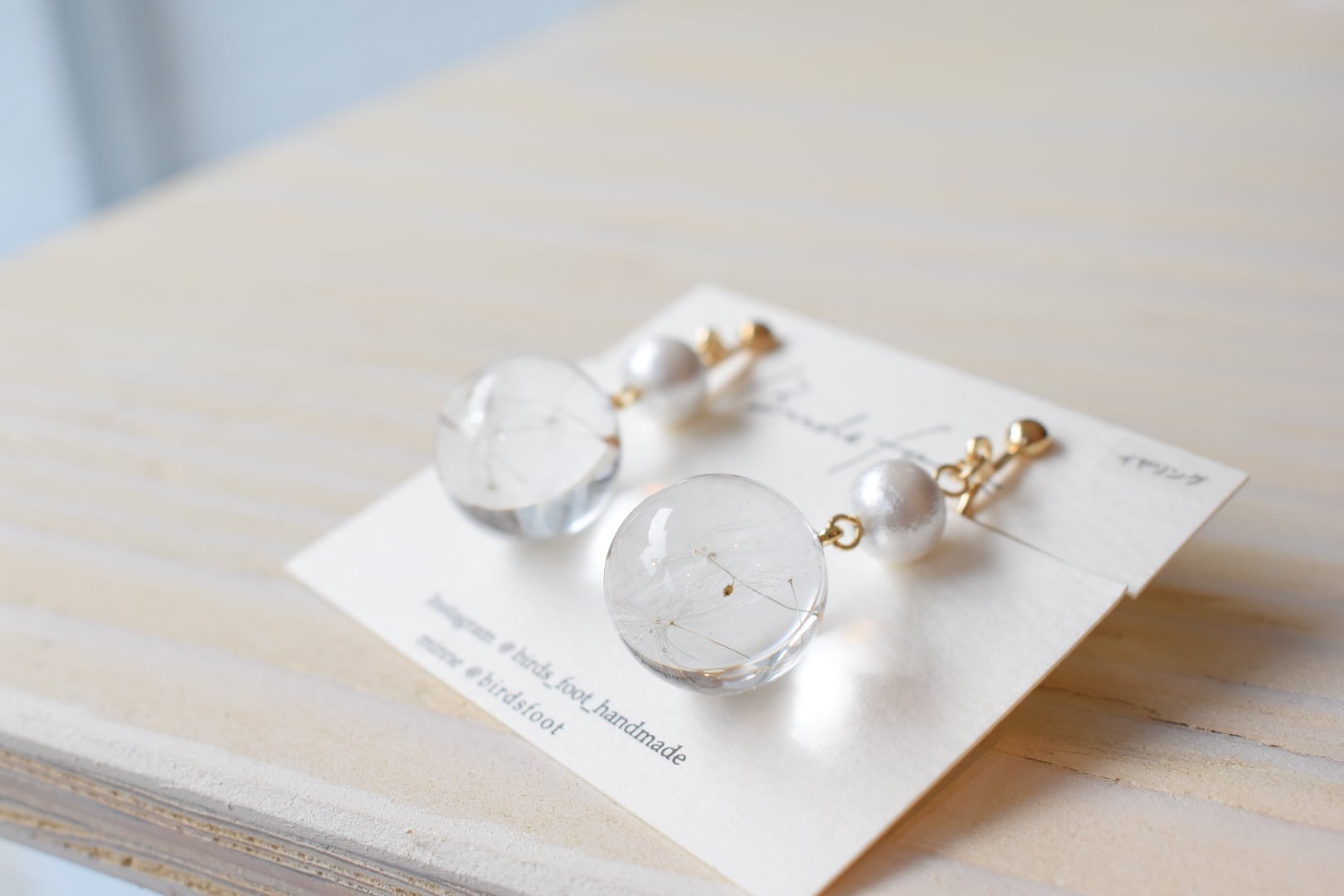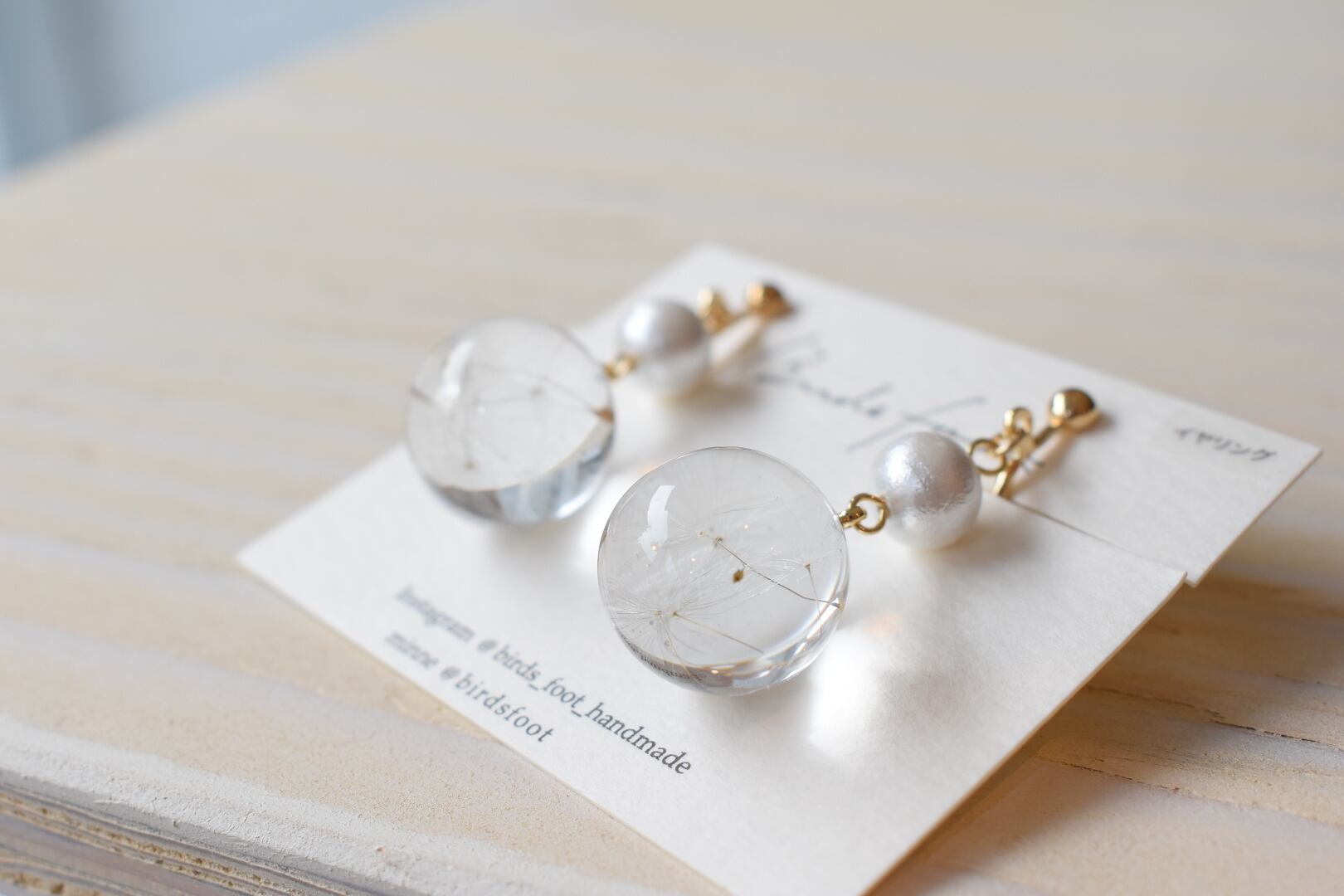 birds foot/たんぽぽの綿毛ビー玉イヤリング