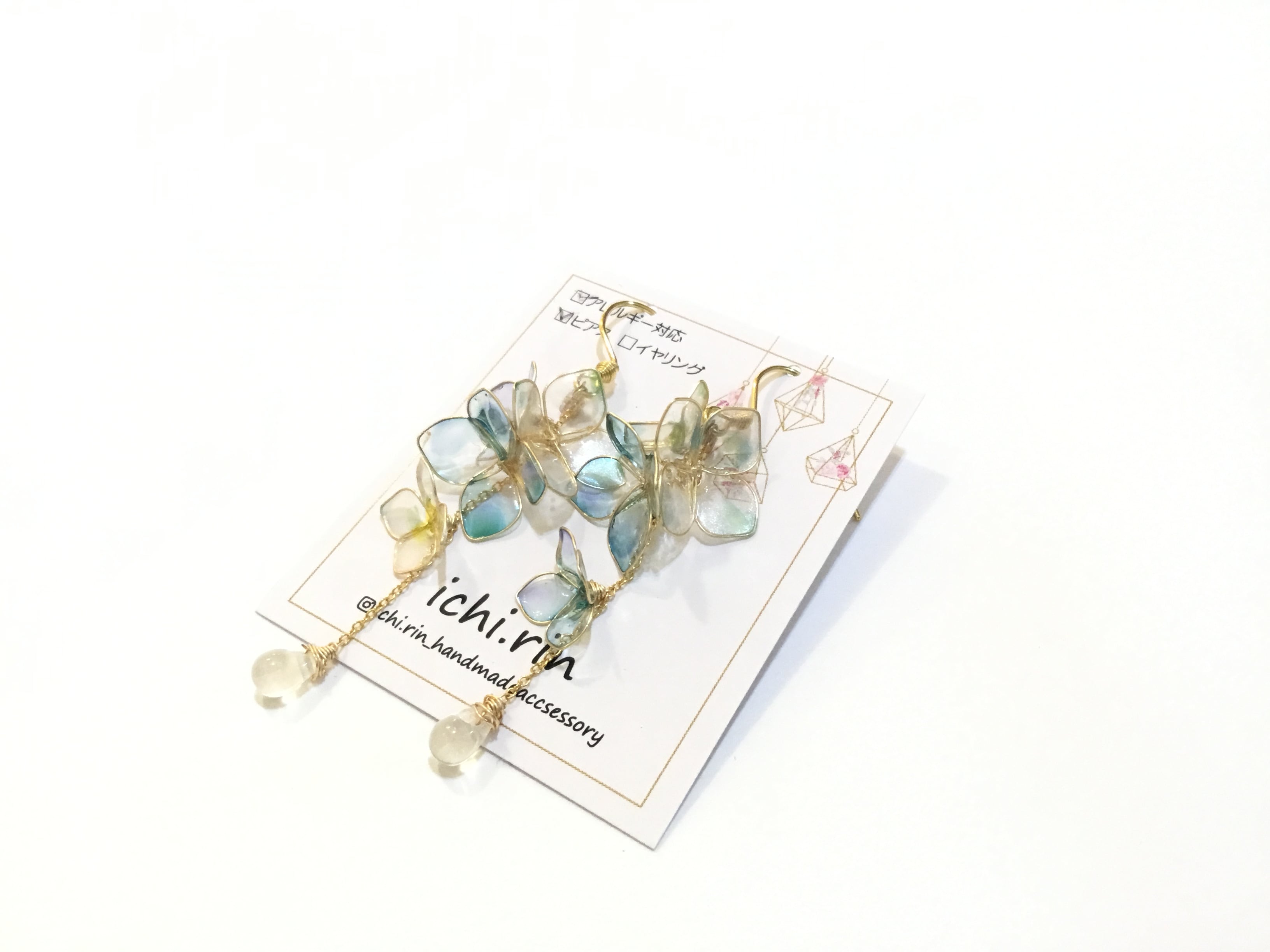 ユラユラ揺れるのが可愛い、アジサイのピアスです。