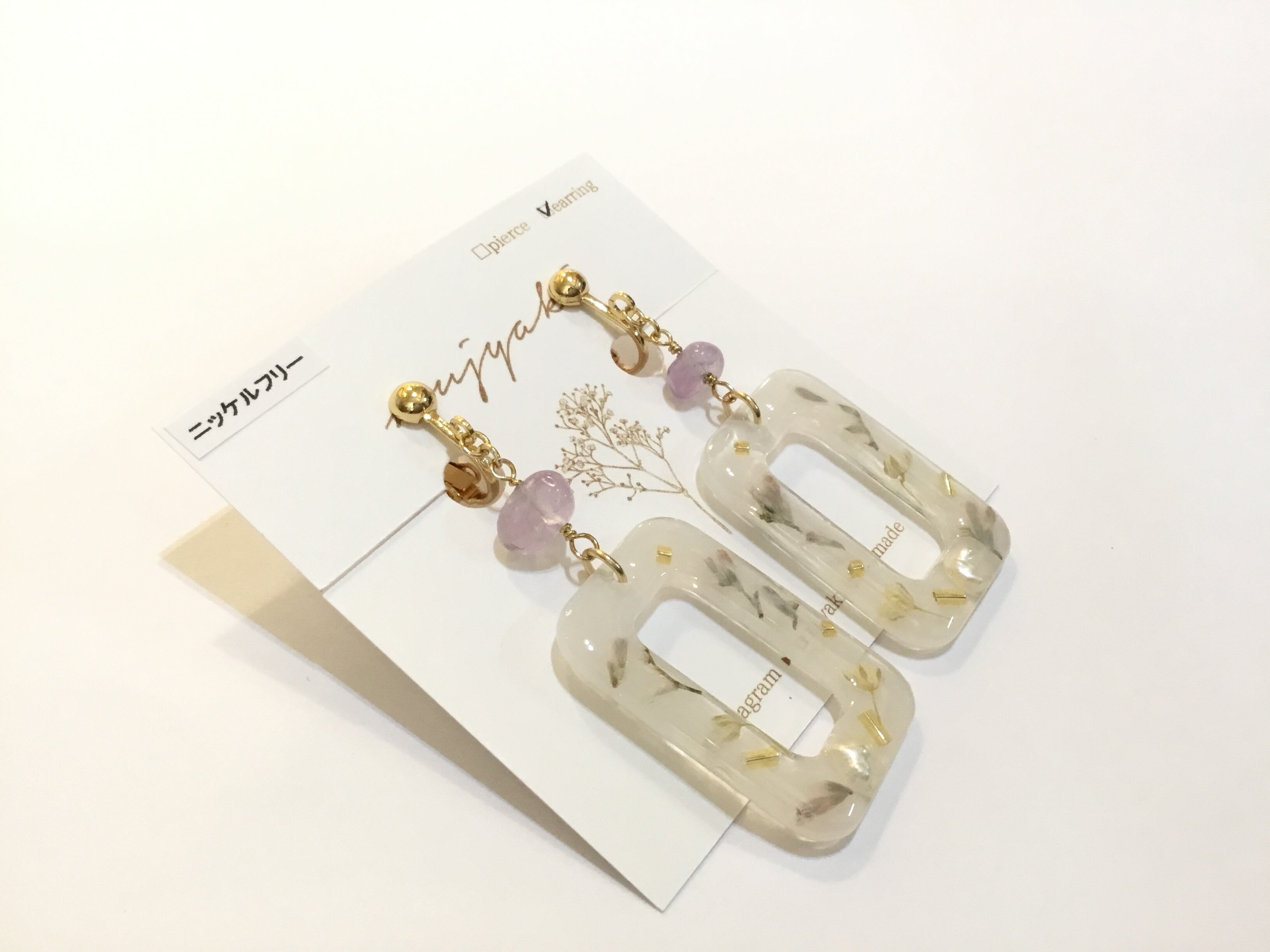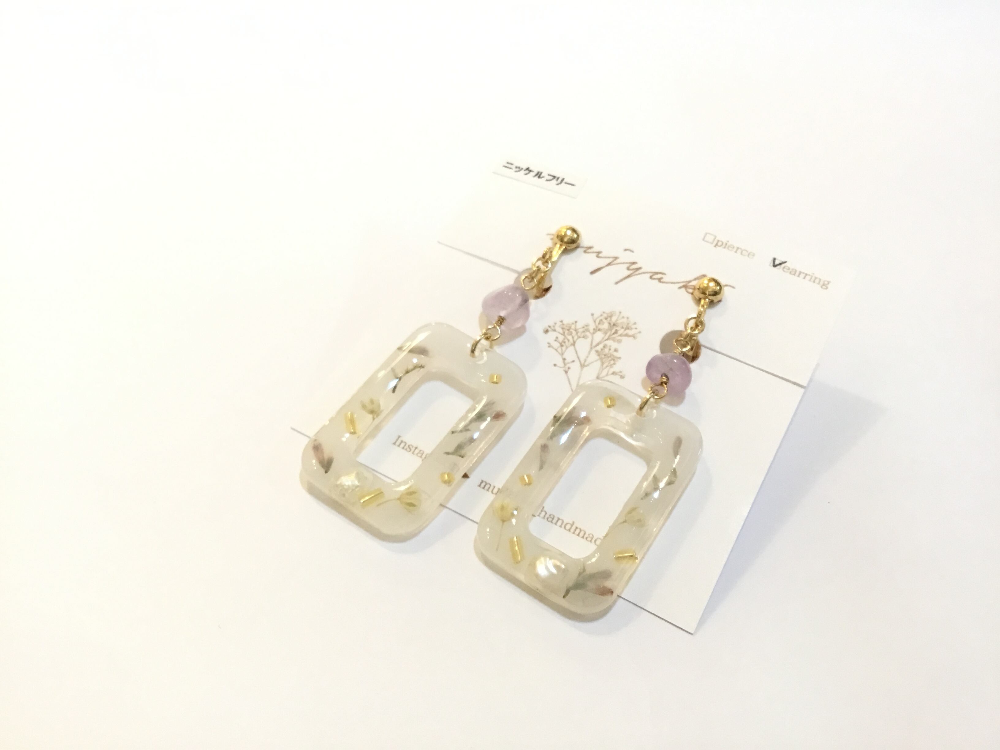 【ピアス変更可能】mujyaki しかくと天然石イヤリング