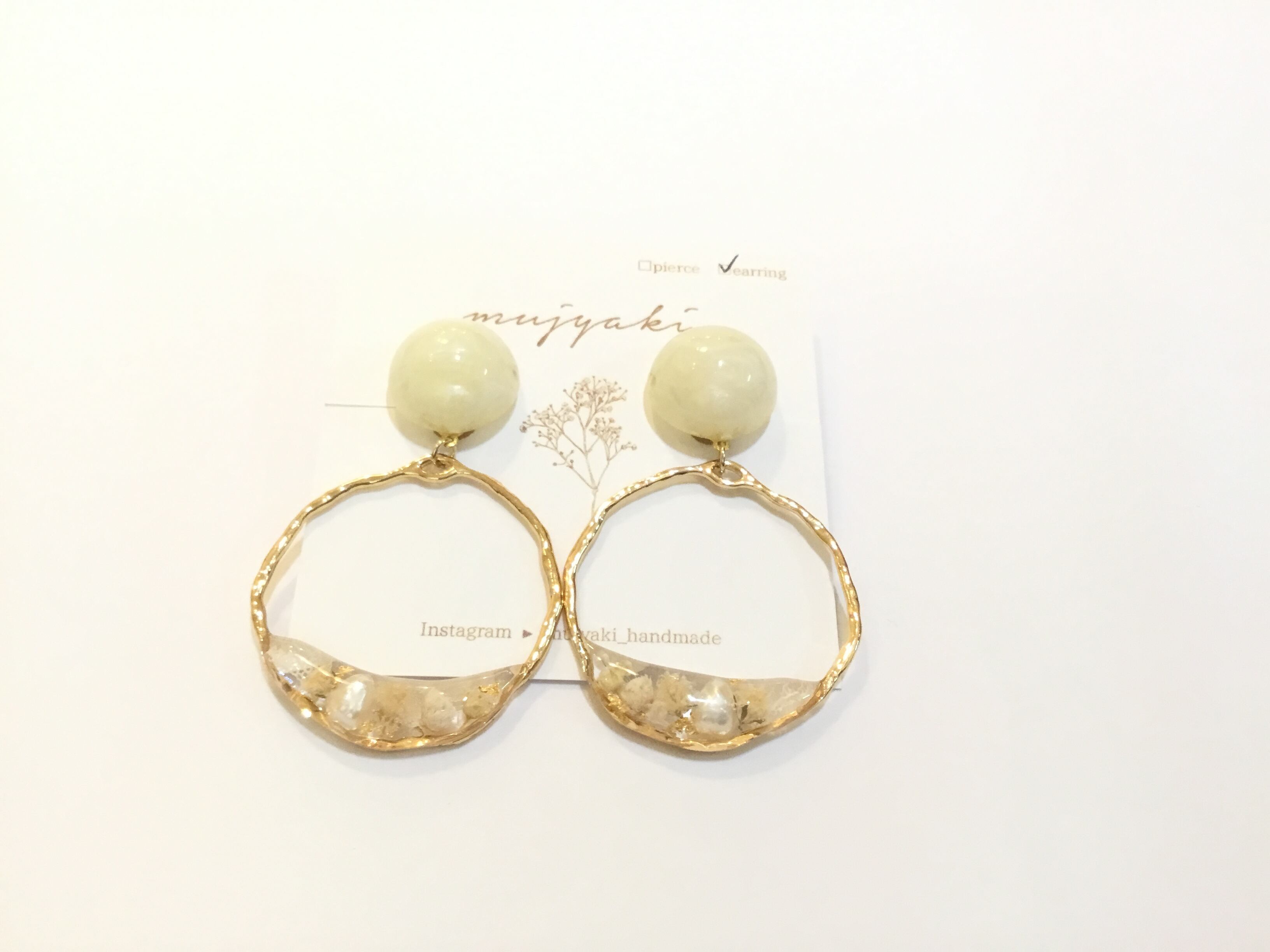 ゆらゆら可愛い、イヤリングです。 リースの下の方だけ花で彩られているのが、また素敵です。 プレゼントにもオススメ! 八坂 249
