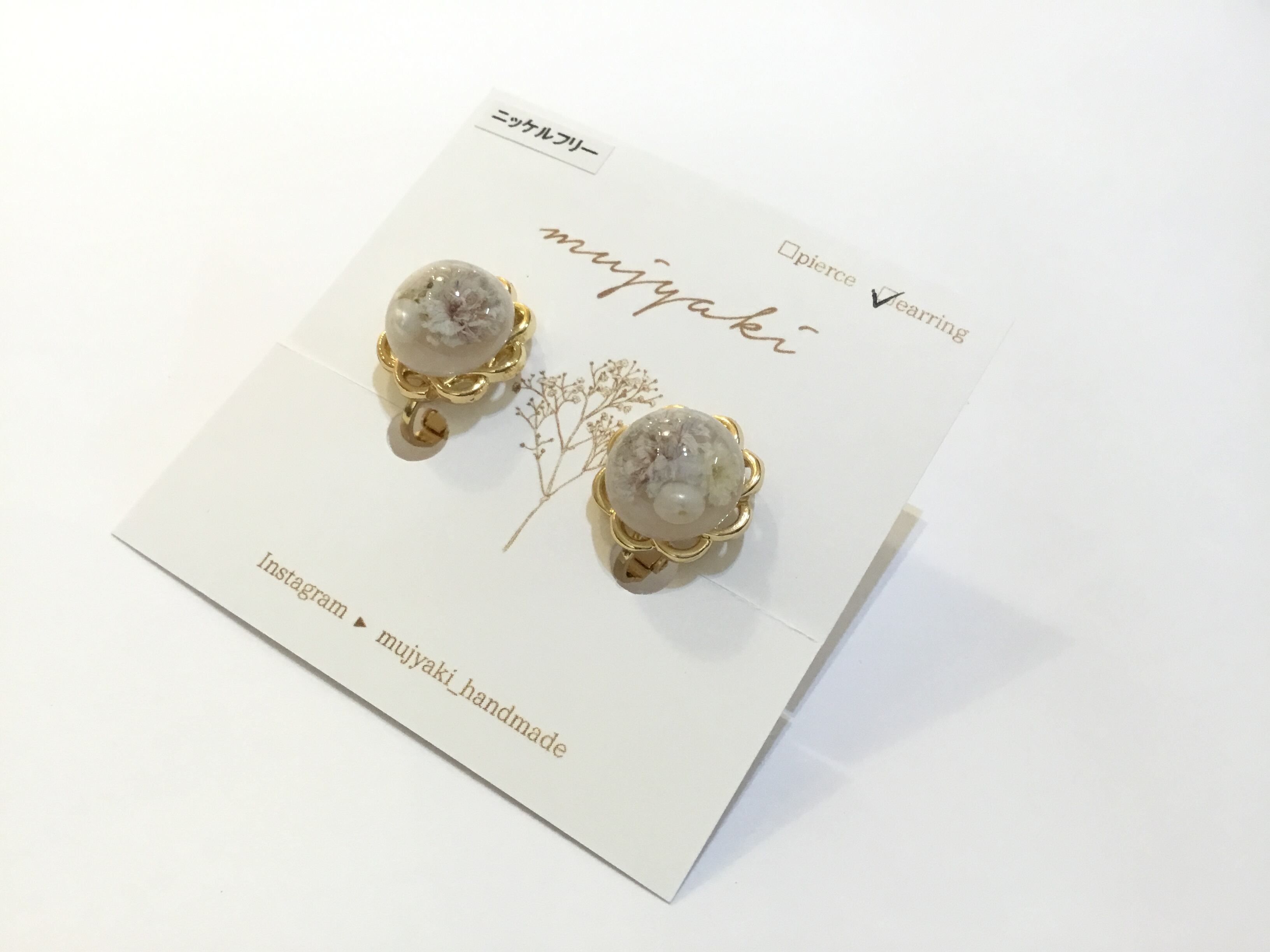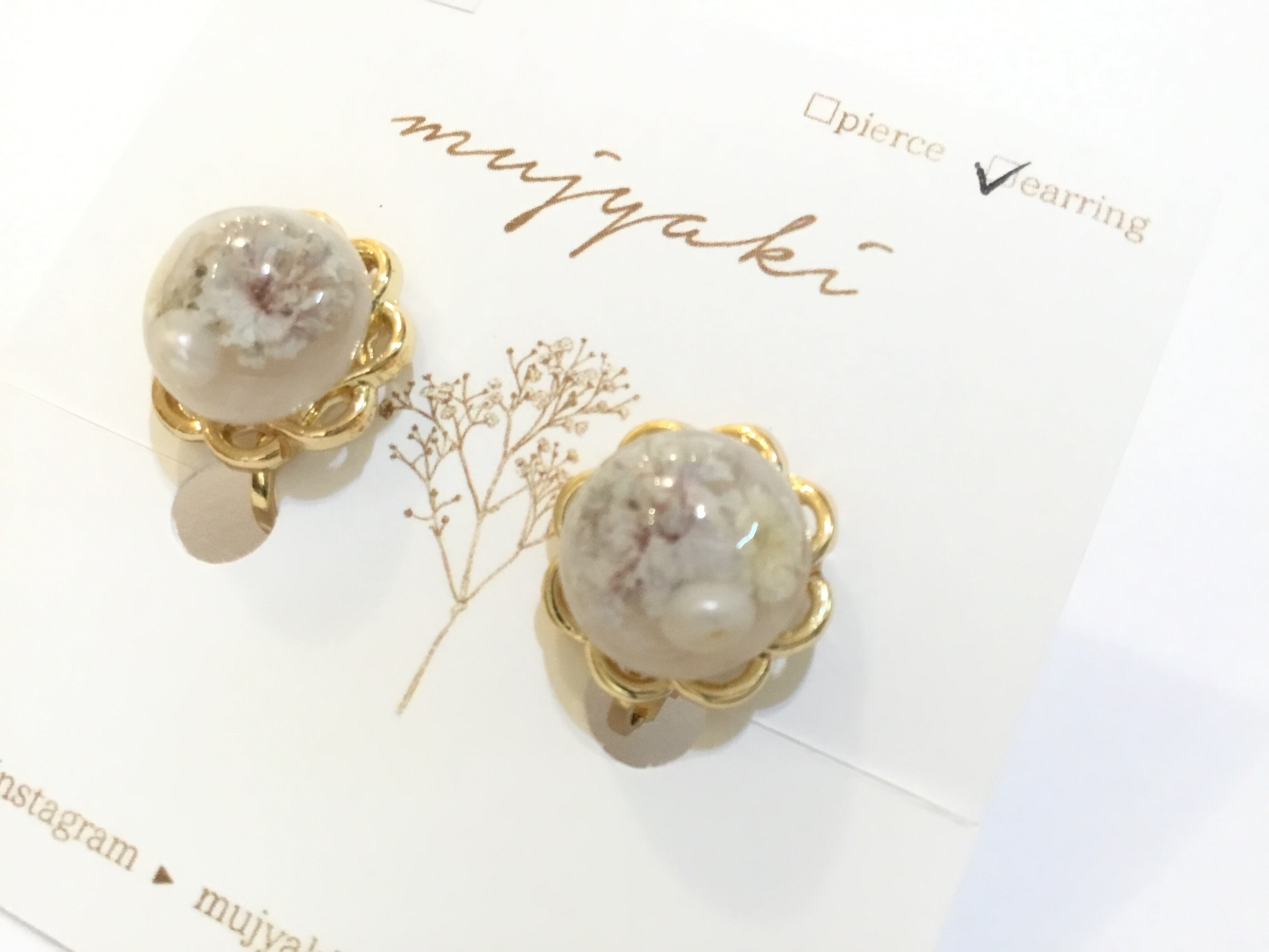 レジンの中には、華やかなお花とパールがたくさん封入されています。