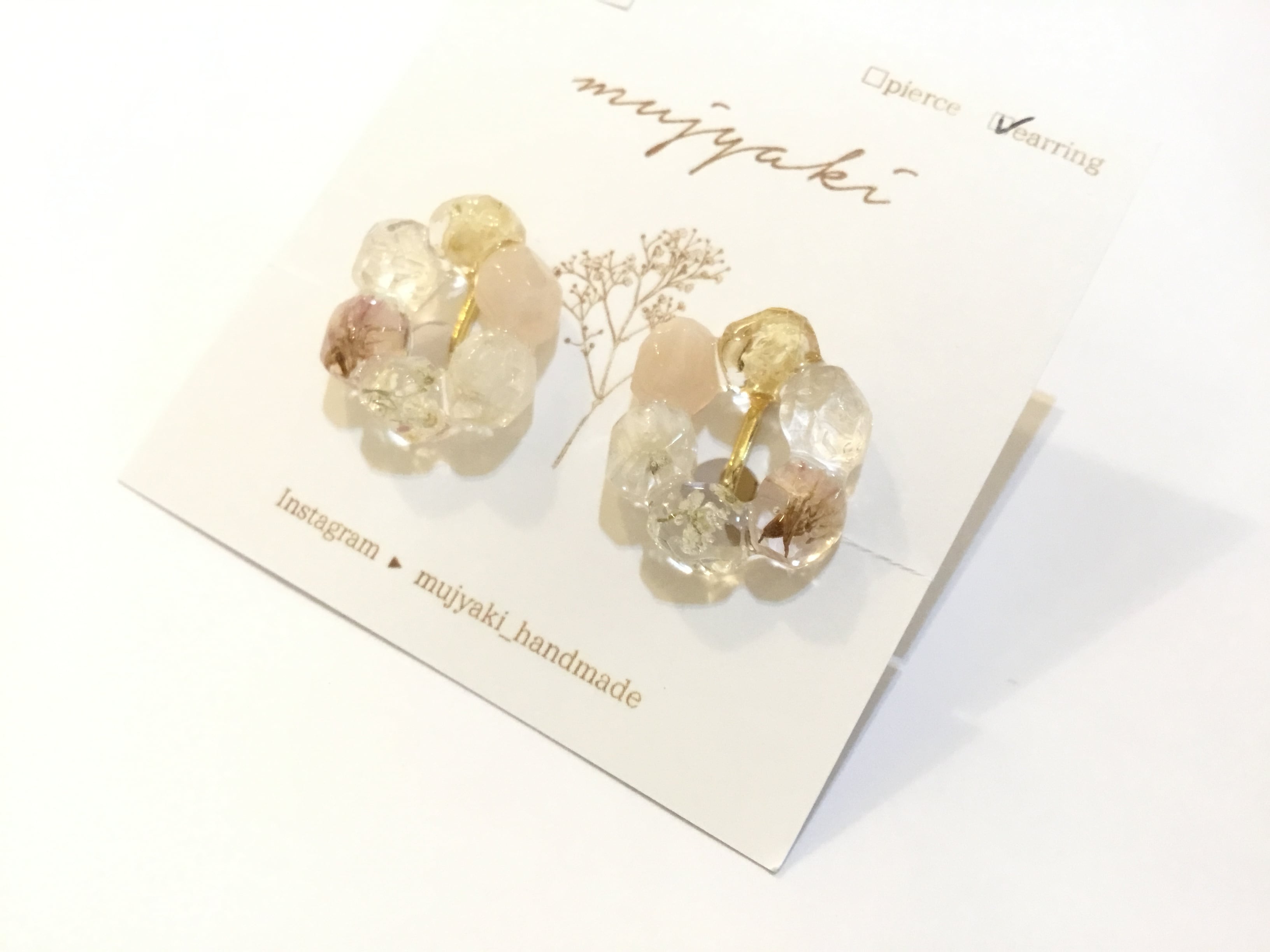 つぶつぶが可愛い、イヤリングです。 一粒一粒にお花が封入されています。 八坂 232