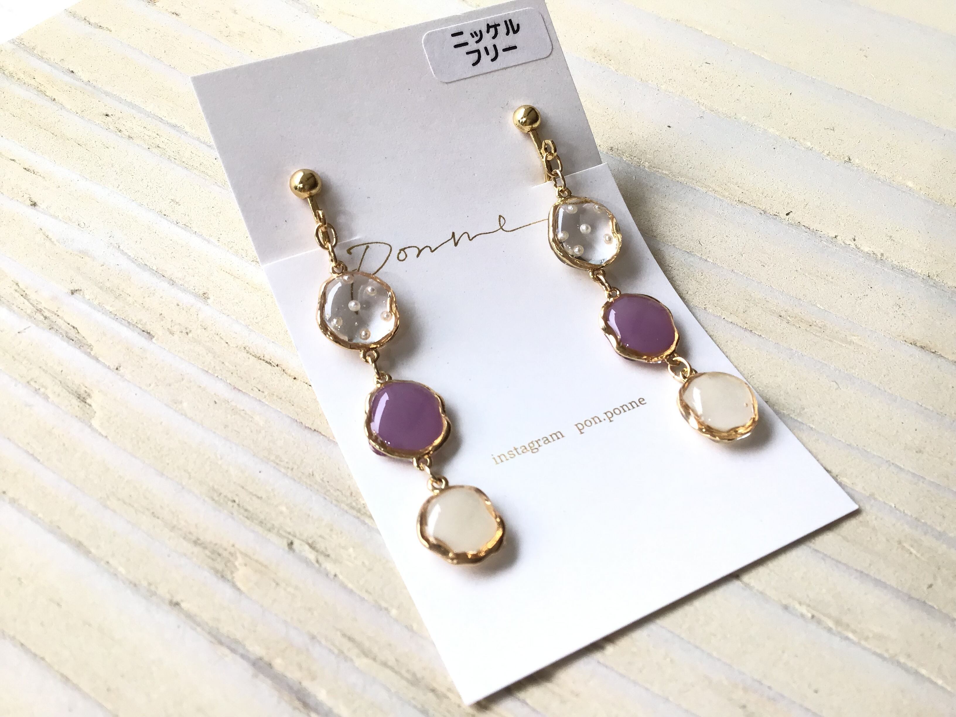 【ピアス変更可能】ponne/3連つぶつぶイヤリング