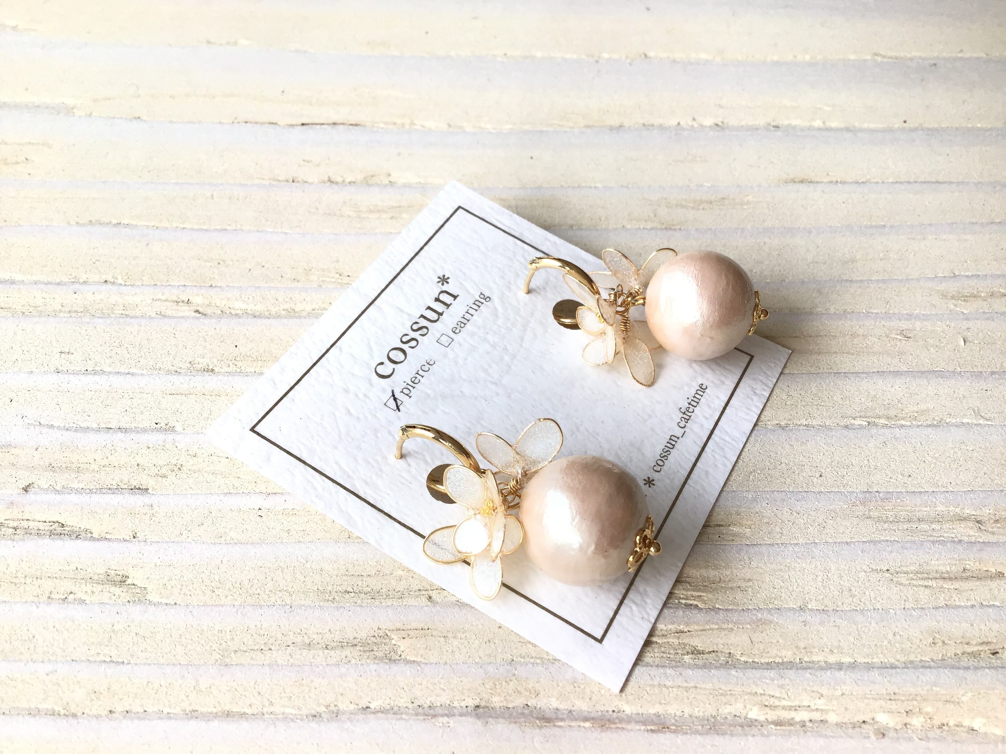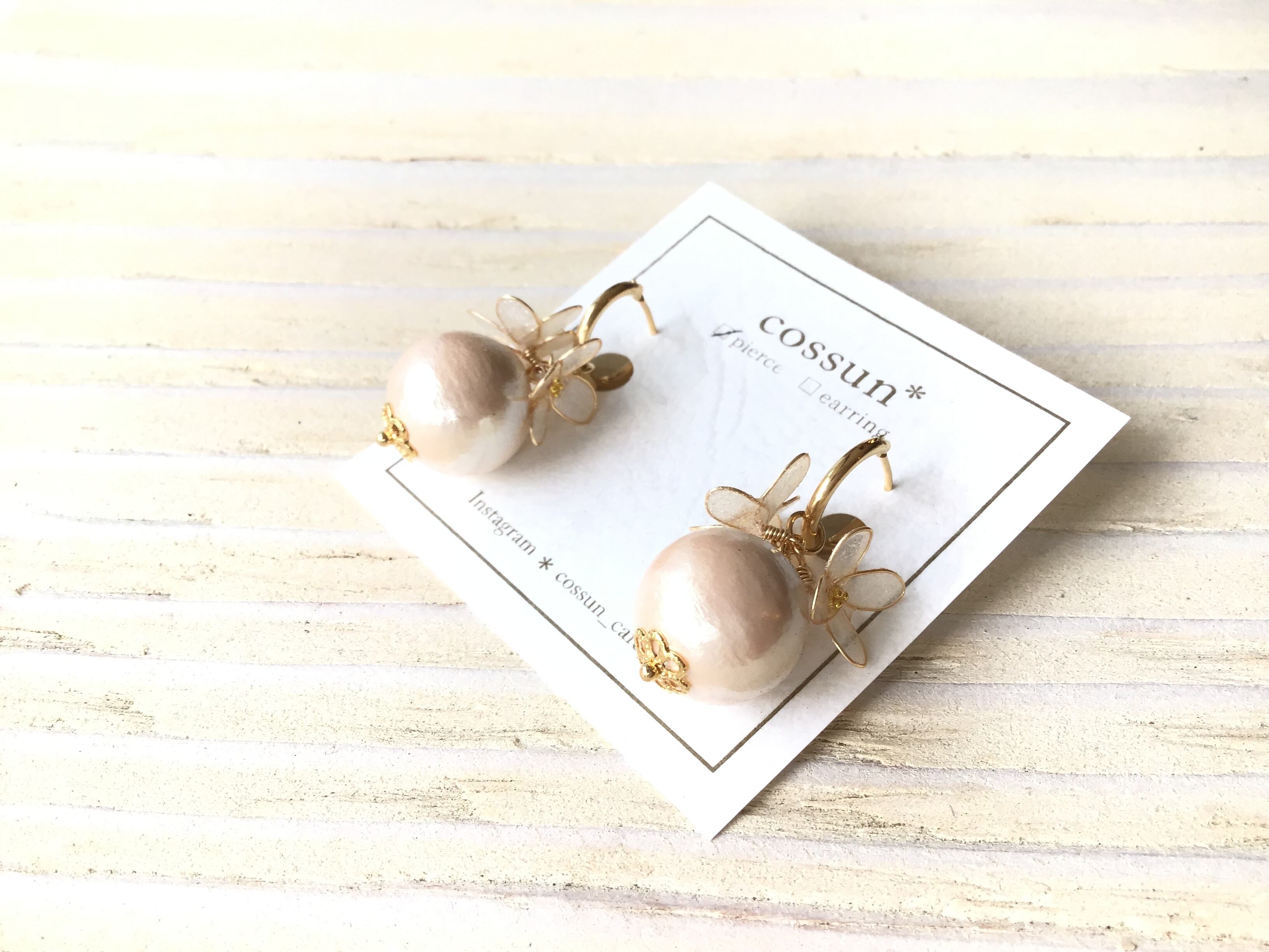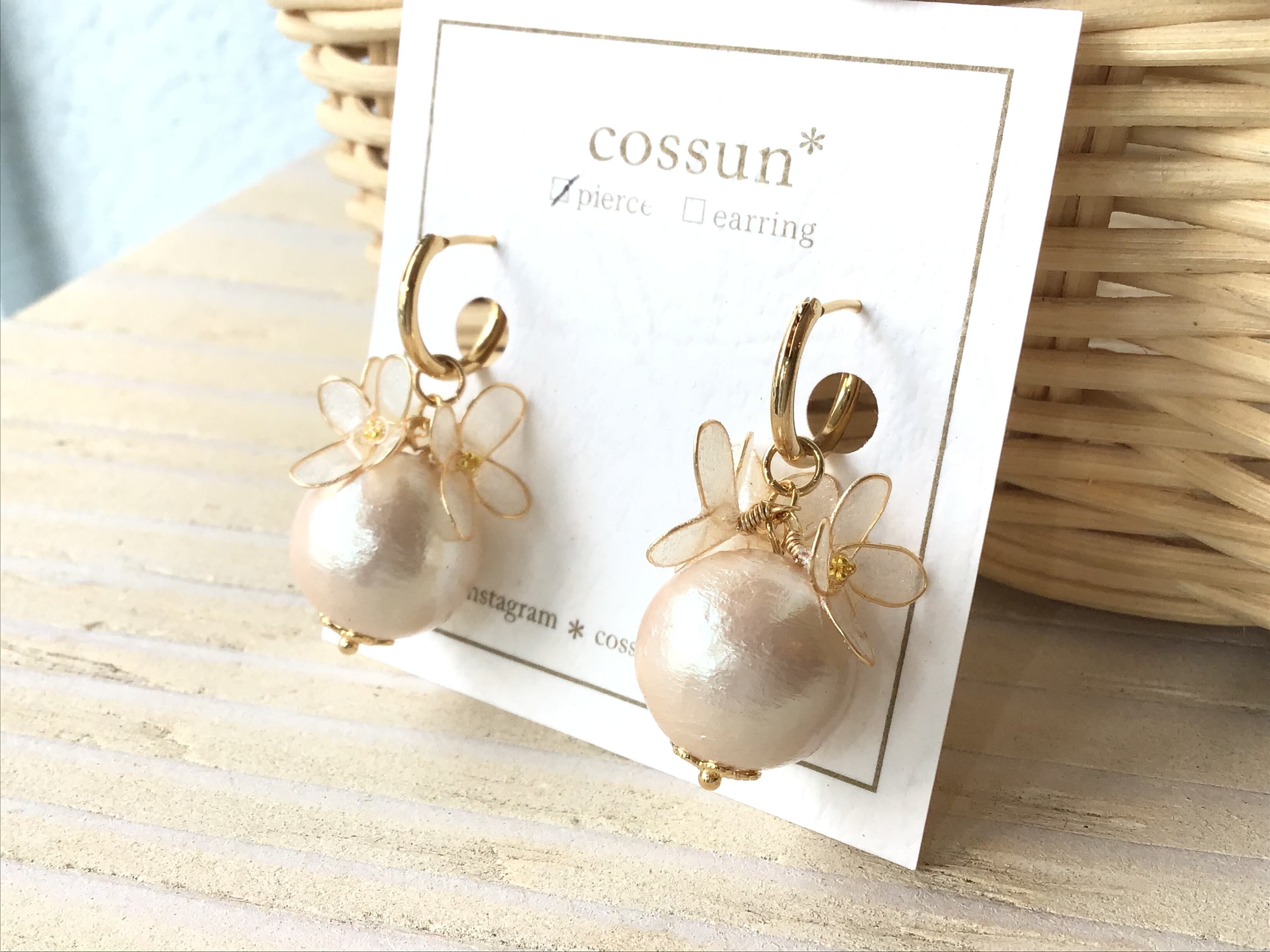 【イヤリング変更可能】cossun*/パール×フラワーピアス