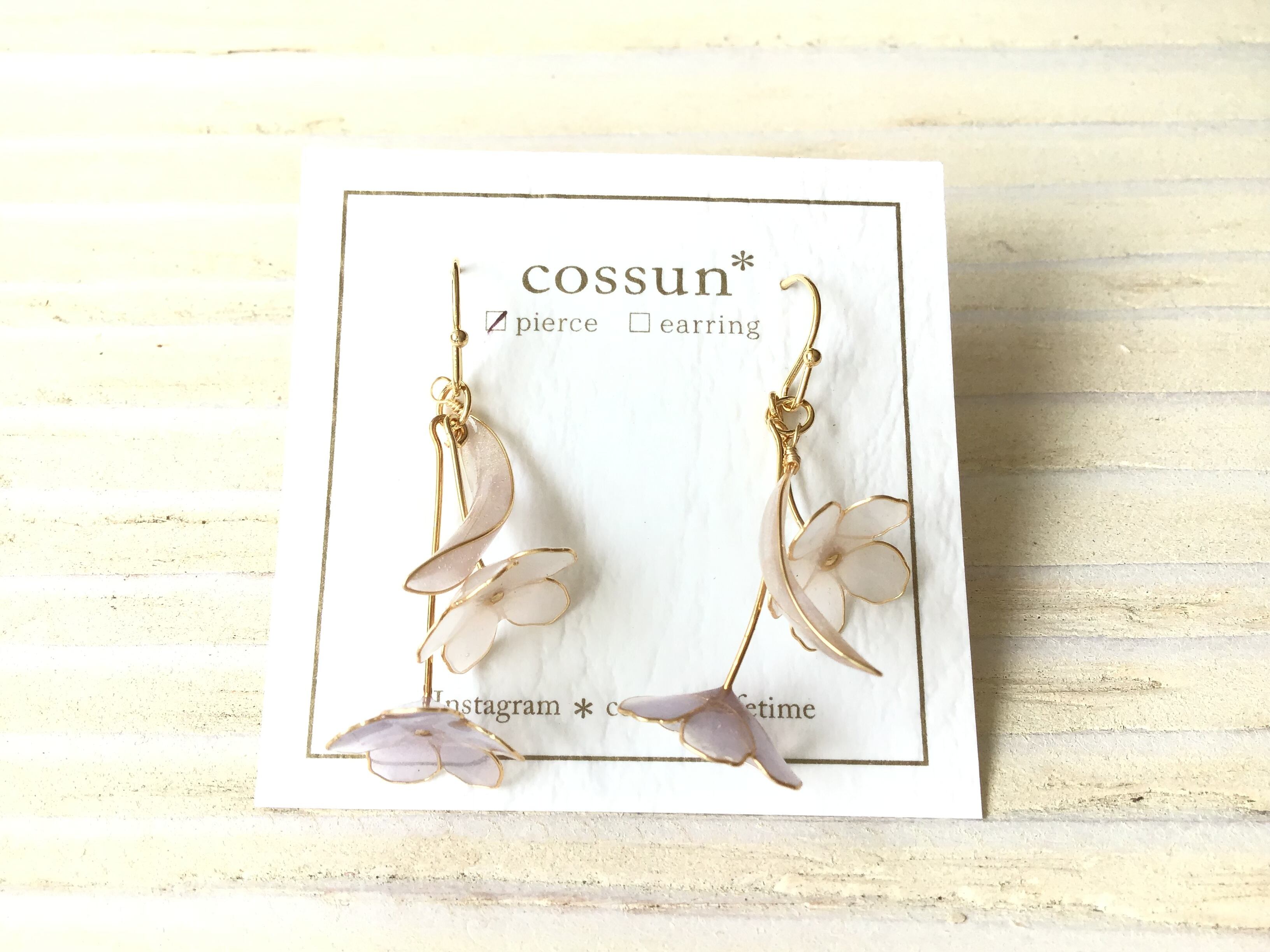 【イヤリング変更可能】cossun*/パープルフラワーピアス
