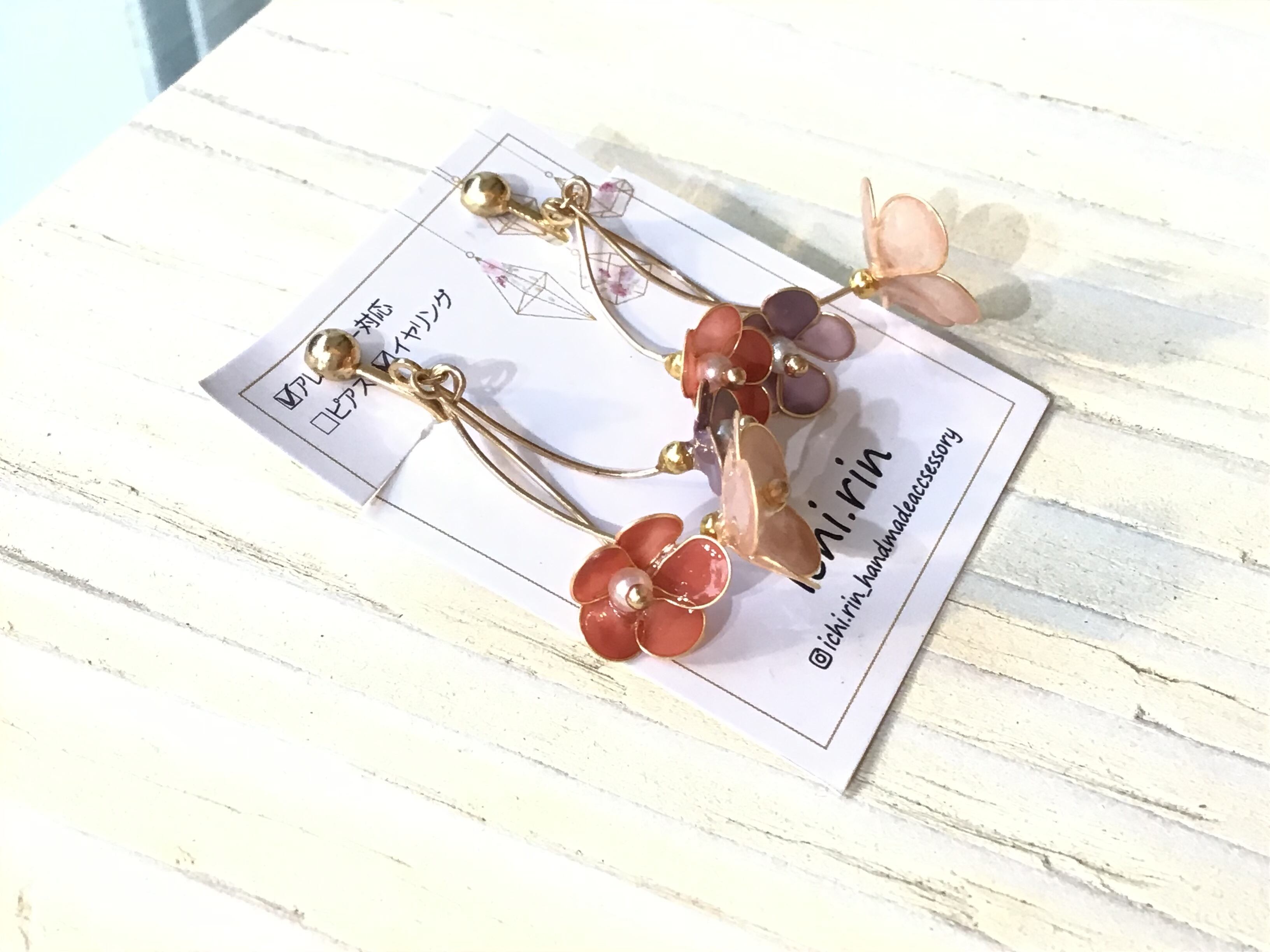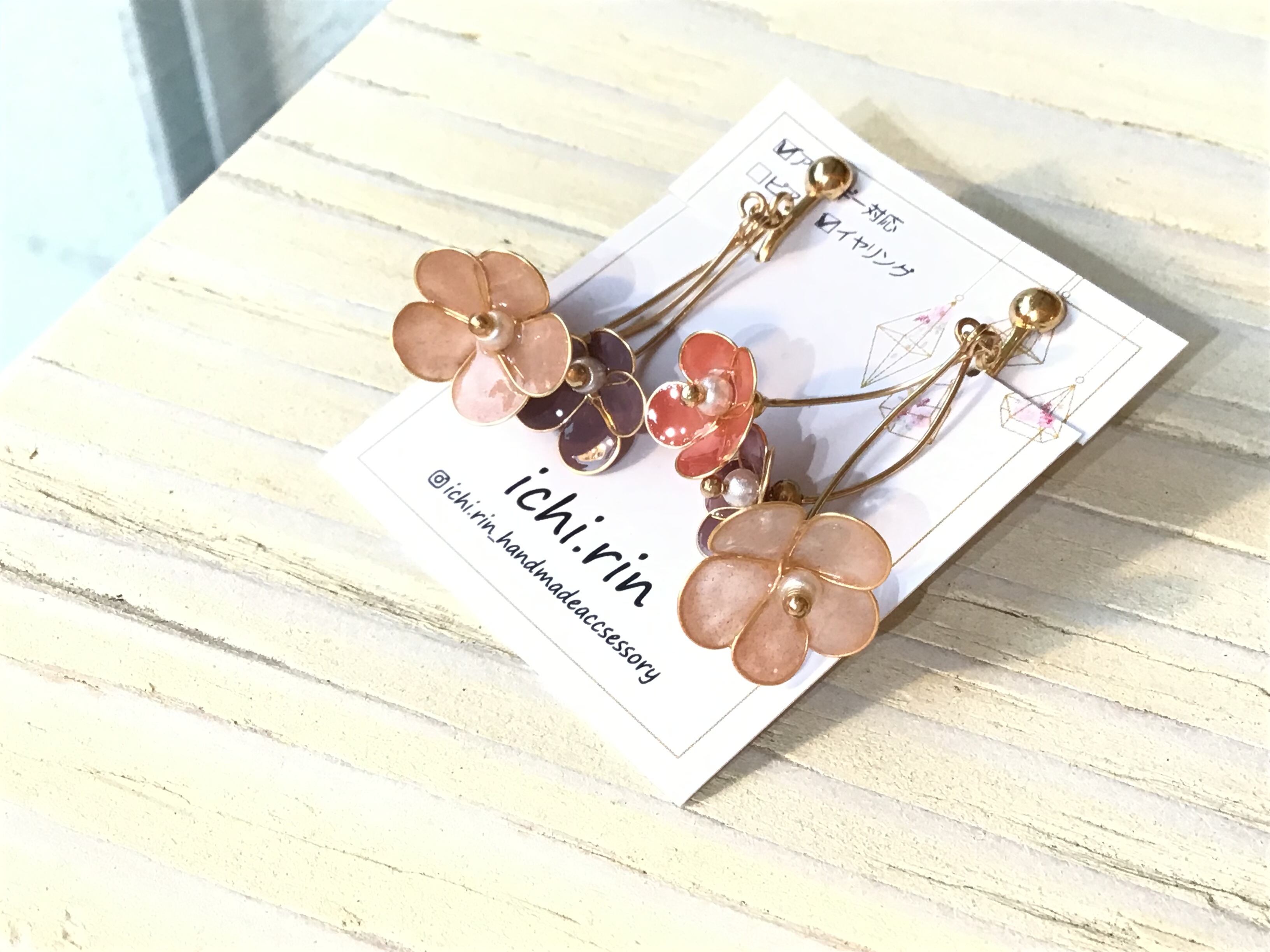 【ピアス変更可能】ichi.rin/ピンクフラワーイヤリング
