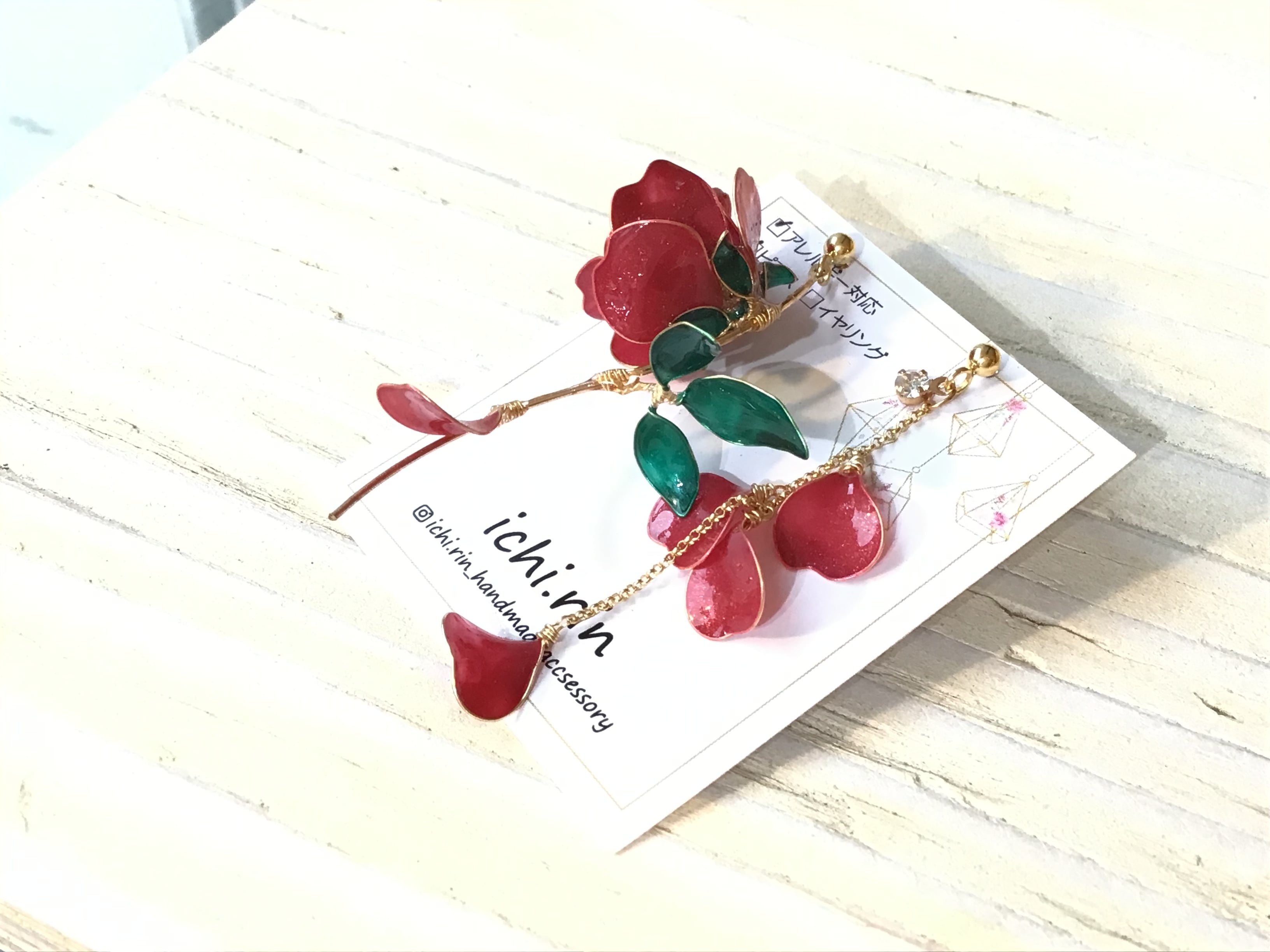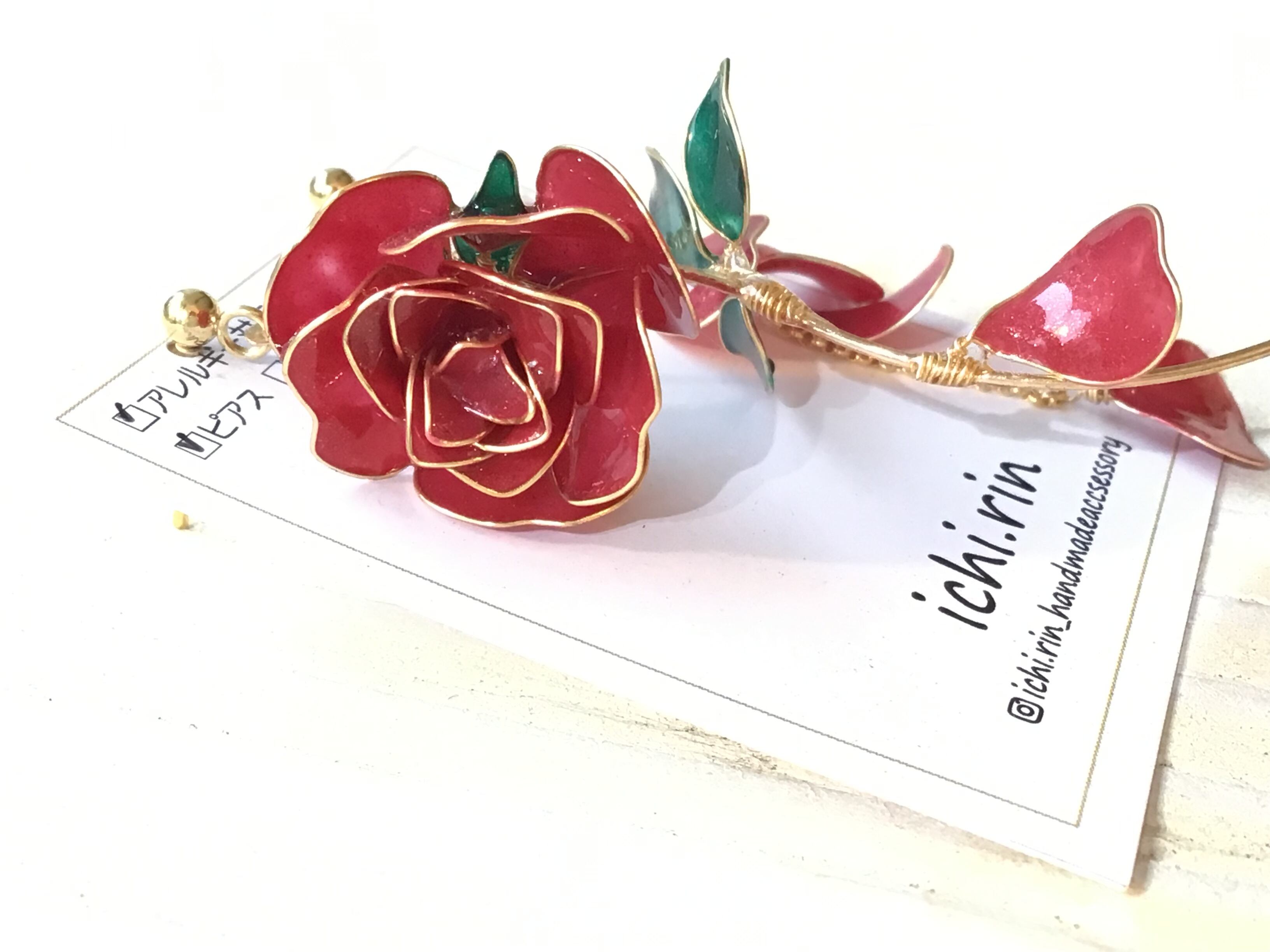 【イヤリング変更可能】ichi.rin/バラのピアス