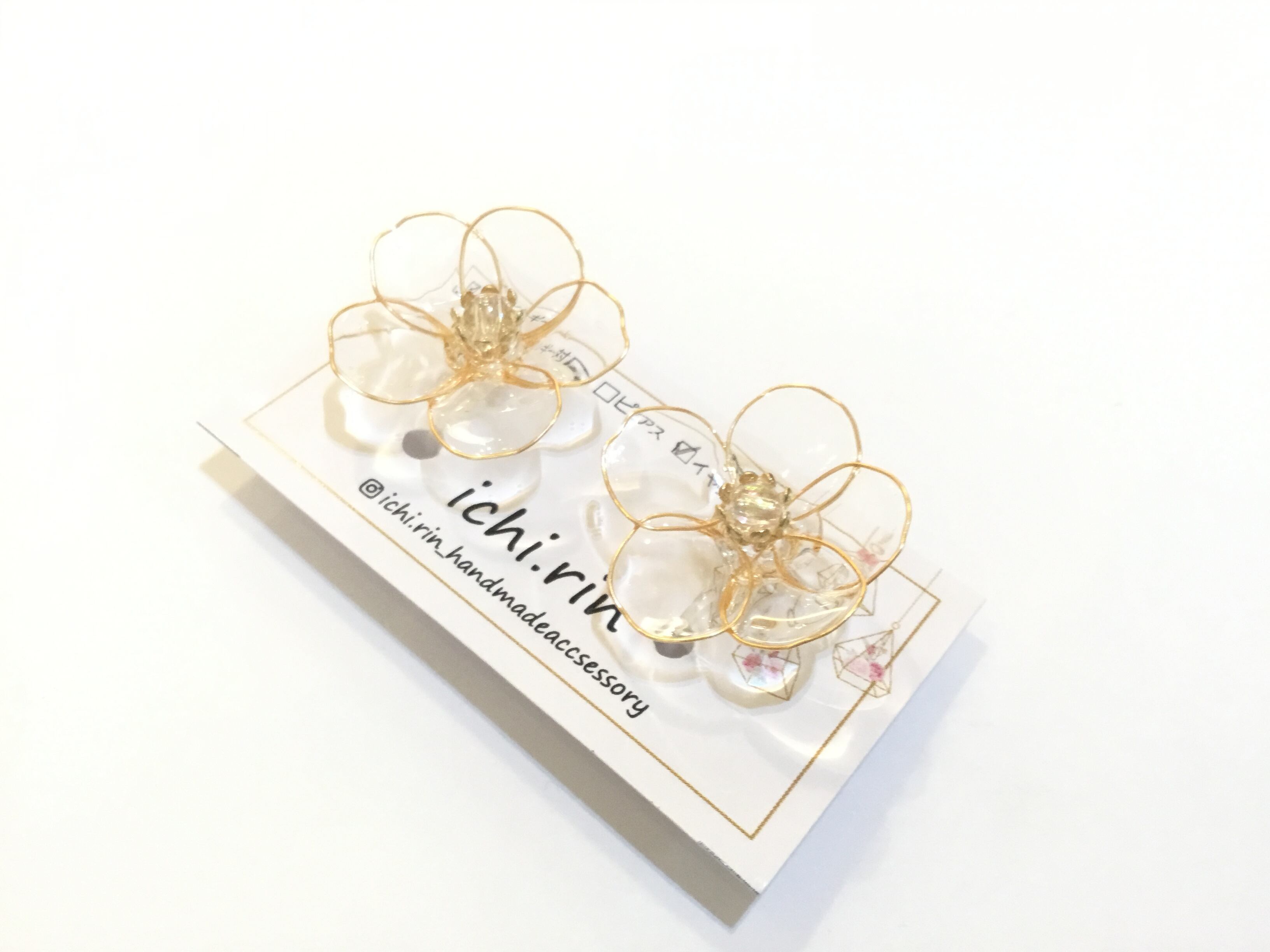 ワイヤーディップのイヤリングです。 クリアカラーがとっても可愛い! 金具は樹脂金具を使用されています。 寺町 107