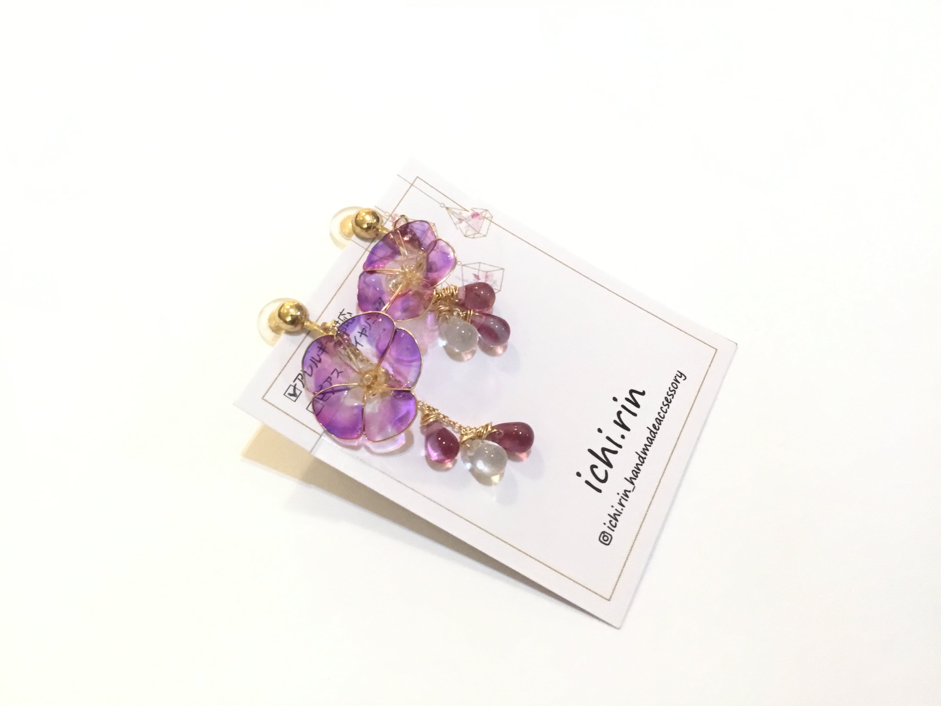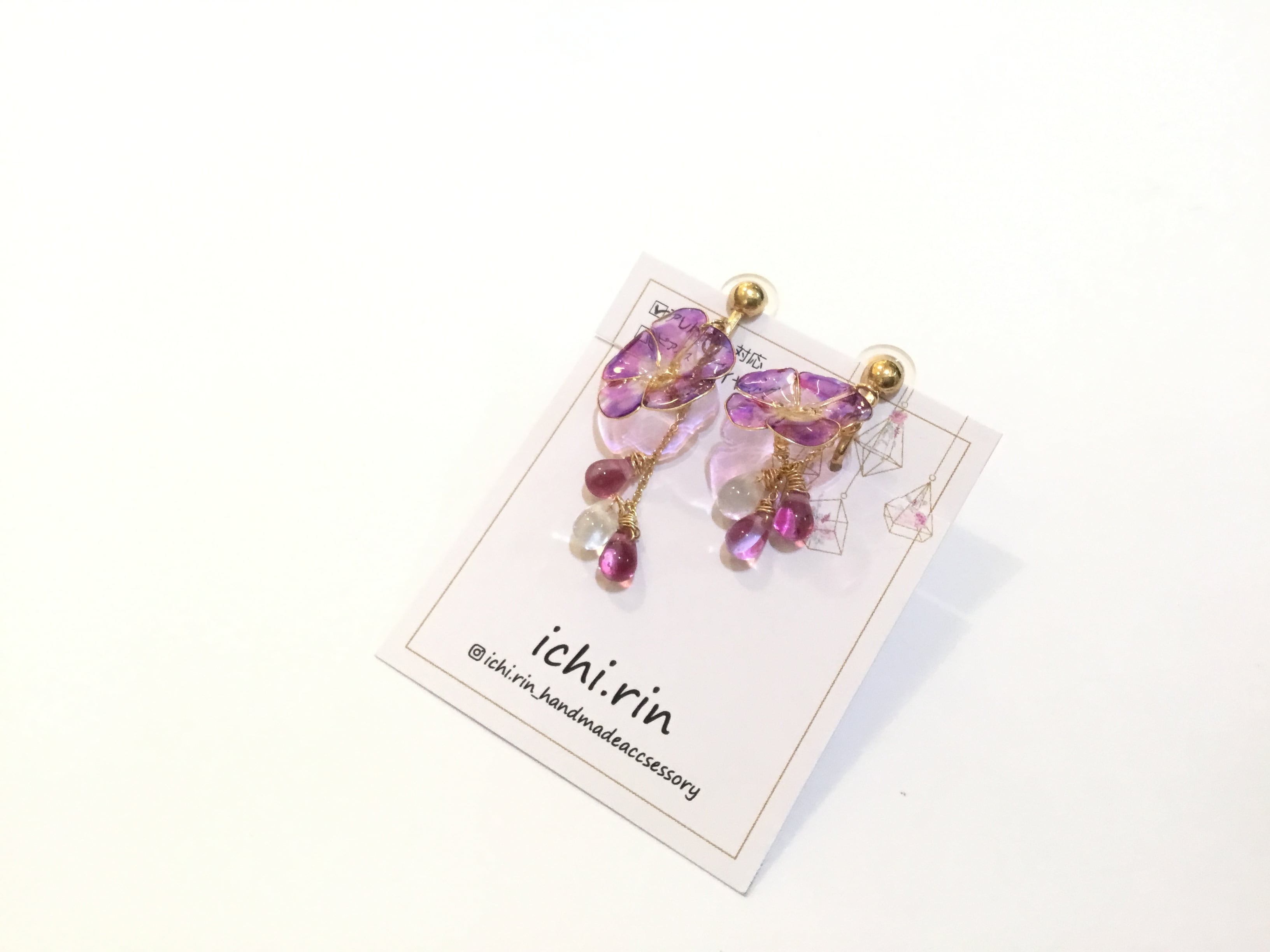ワイヤーディップのイヤリングです。 クリアのパープルカラーがまた素敵です。 夏にオススメの作品です! 寺町 96