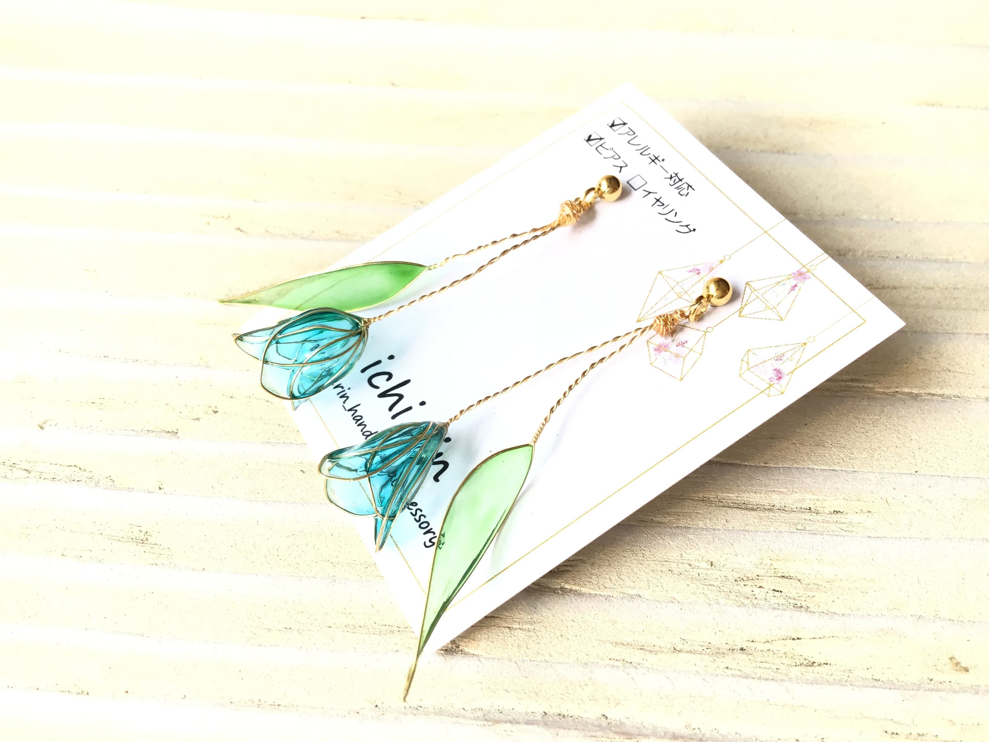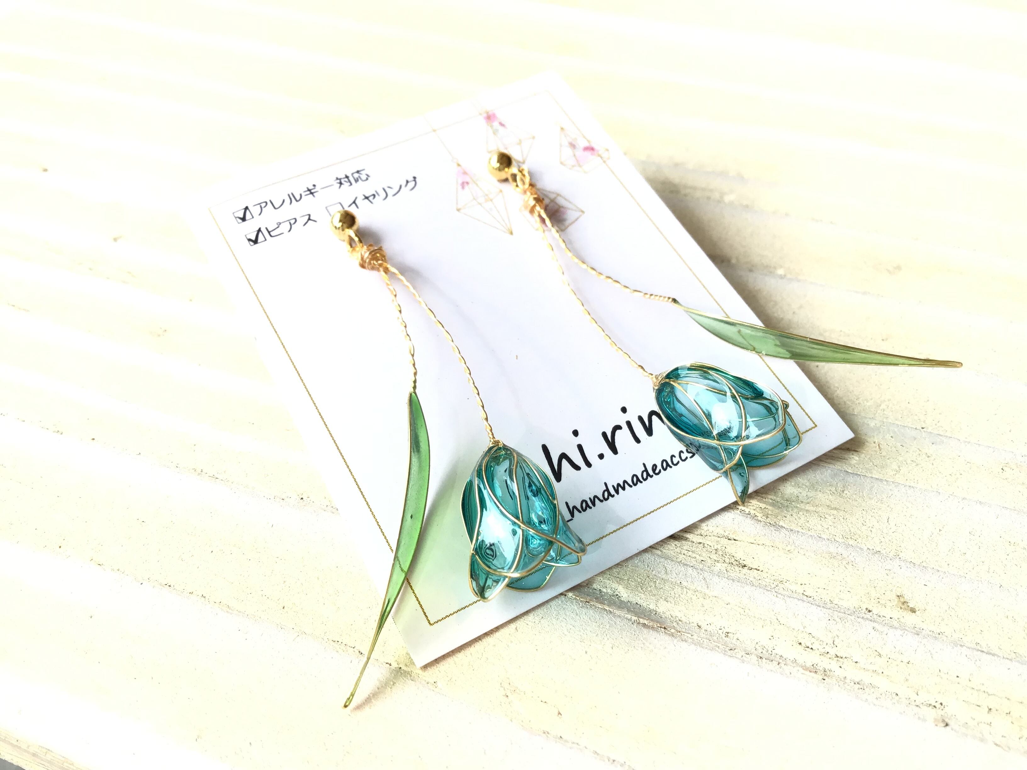 ichi.rin様制作のワイヤーディップアクセサリーです! 繊細でかわいらしいお花が、お顔周りを華やかにしてくれます♪ 透明感のあるブルーが涼しげです! 人気作品ですのでお早めにどうぞ✨ 【イヤリング変更可能】 イヤリングへ変更の際は、備考欄に必ずご記入下さい。 【八坂店207】