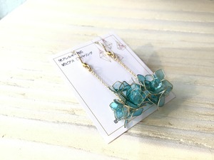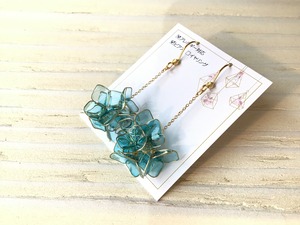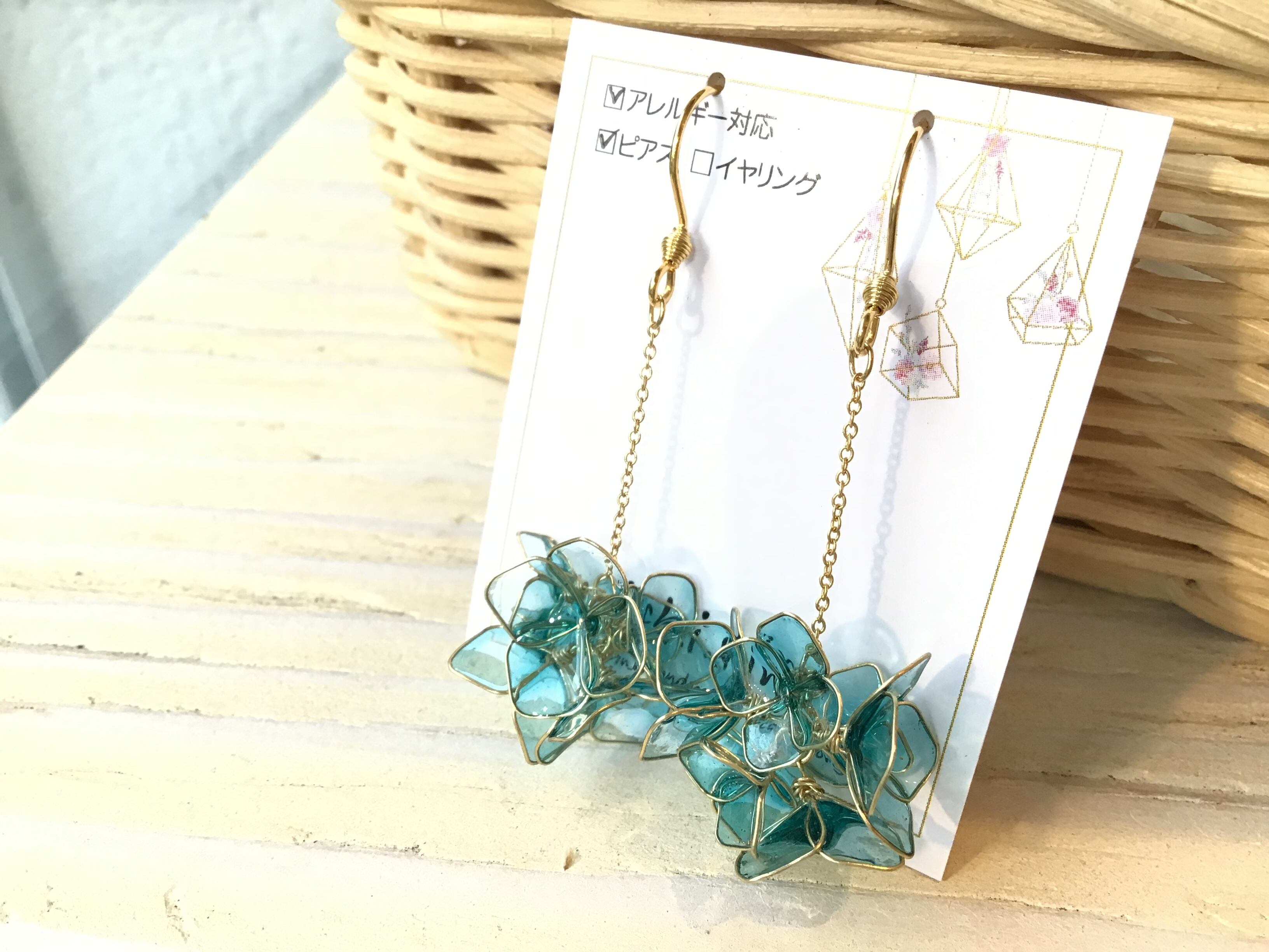 ichi.rin様制作のワイヤーディップアクセサリーです! 繊細でかわいらしいお花が、お顔周りを華やかにしてくれます♪ 涼やかなブルーのあじさいは、透明ですのでキラキラと輝きます✨ 人気作品ですのでお早めにどうぞ‼︎ 【イヤリング変更可能】 イヤリングに変更の際は、備考欄に必ずご記入下さい。 【八坂店172】