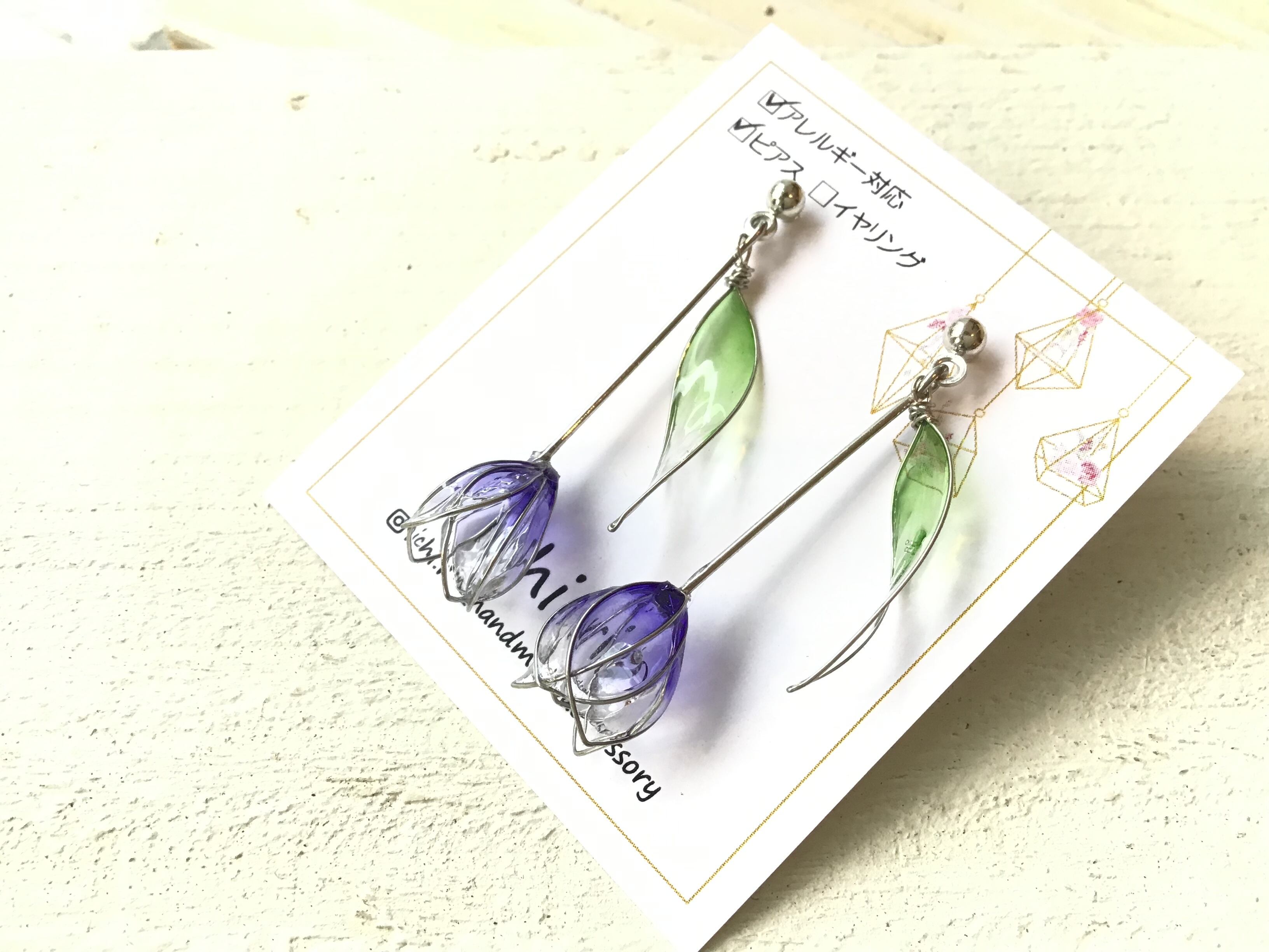 透明感のある花びらと葉っぱ、シルバーの金具の組み合わせが爽やかです♪