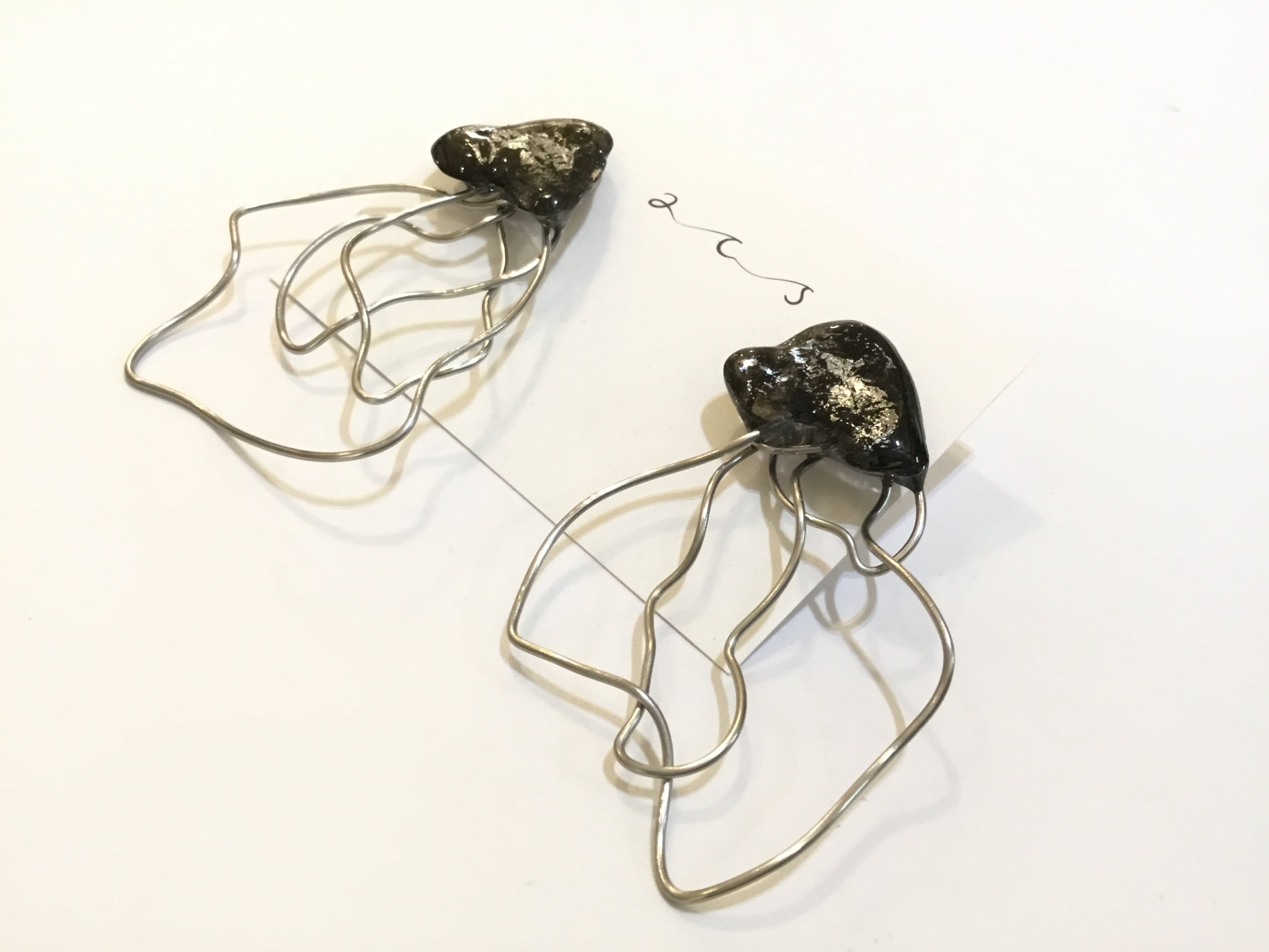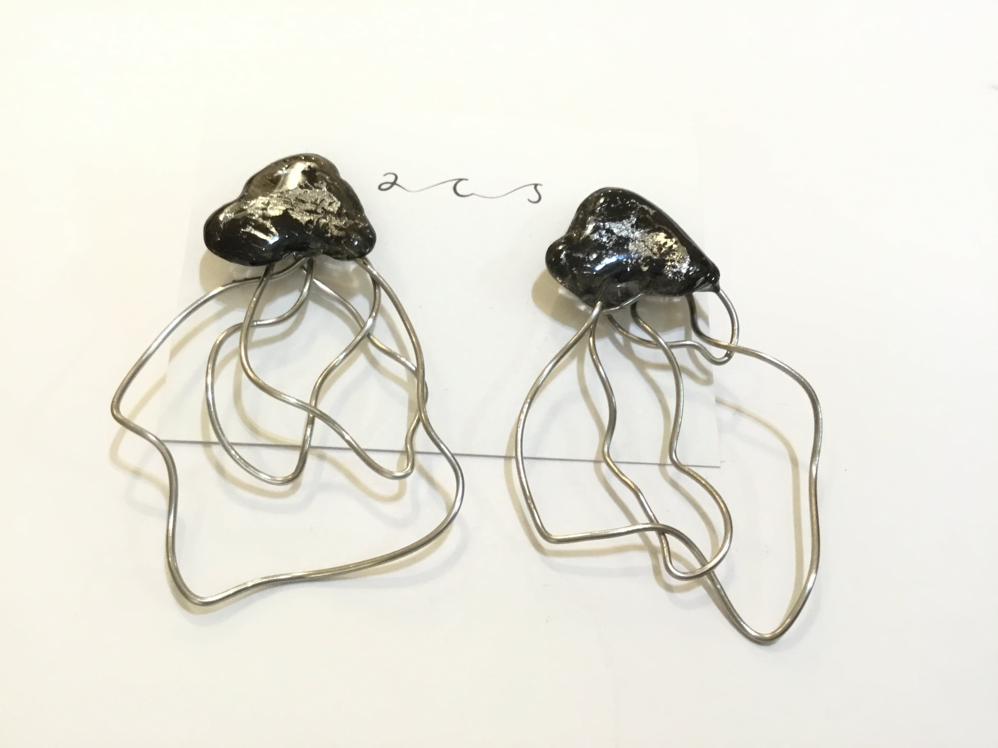 ブラックカラーが可愛いピアスです。 ワイヤーがまた作品の魅力を引き立ててくれます。 海月にも、お化けにも見える不思議なデザインです。 寺町 568