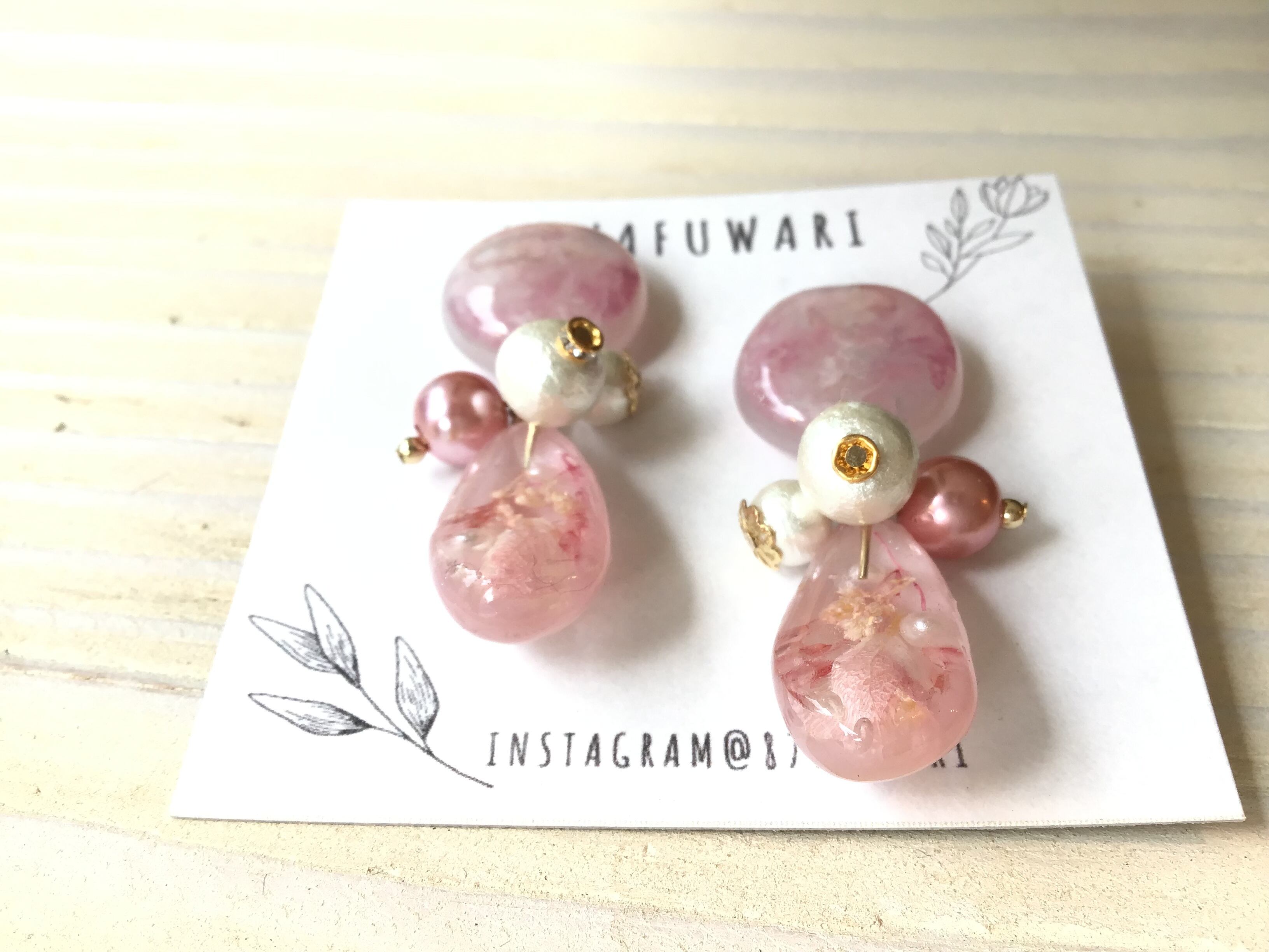 花ふわり様制作 ピンクを基調としたレジン作品です♪ 優しいナチュラルピンクとパールの組み合わせが可愛らしいです✨ 【八坂店hanaY49】